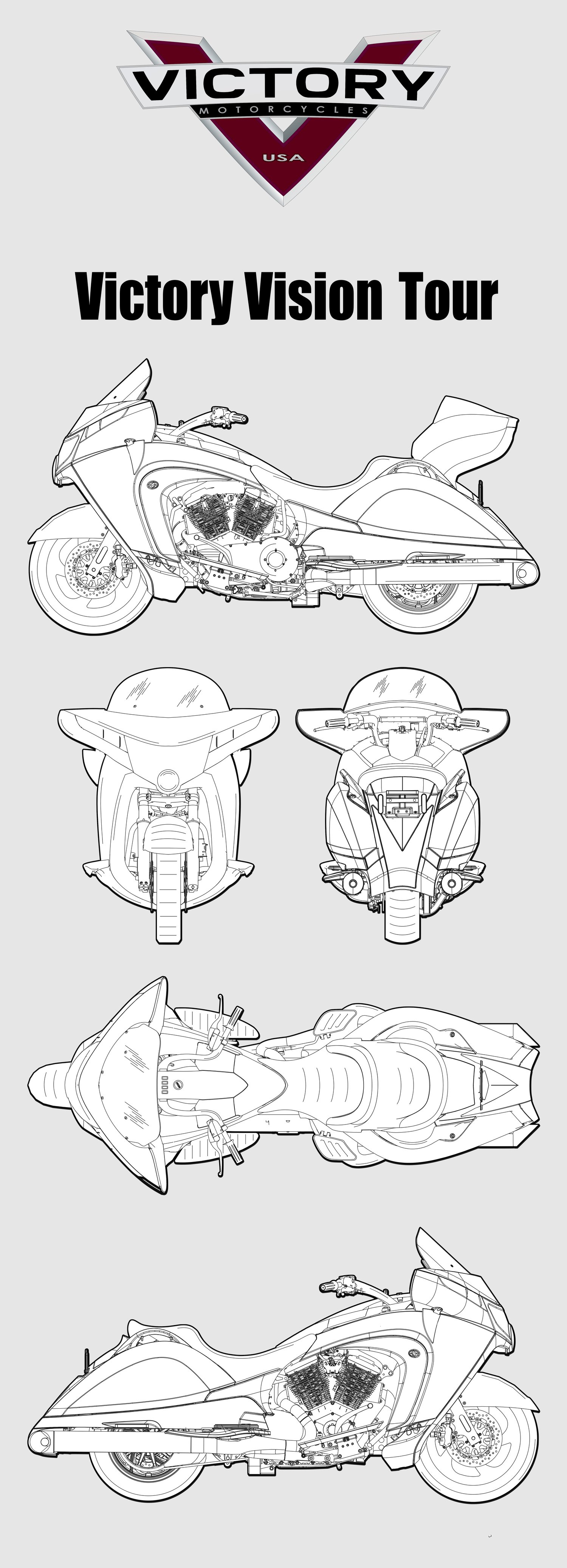 Victory Vision Tour Motorcycle Blueprint PDF SVG Vector Drawing.