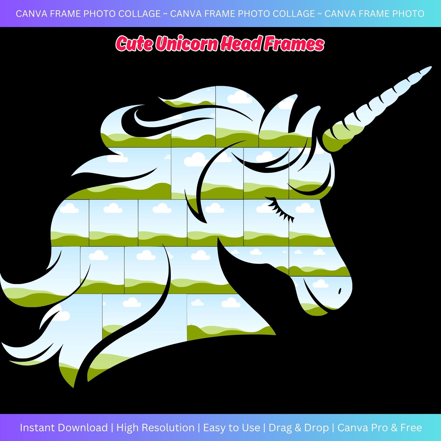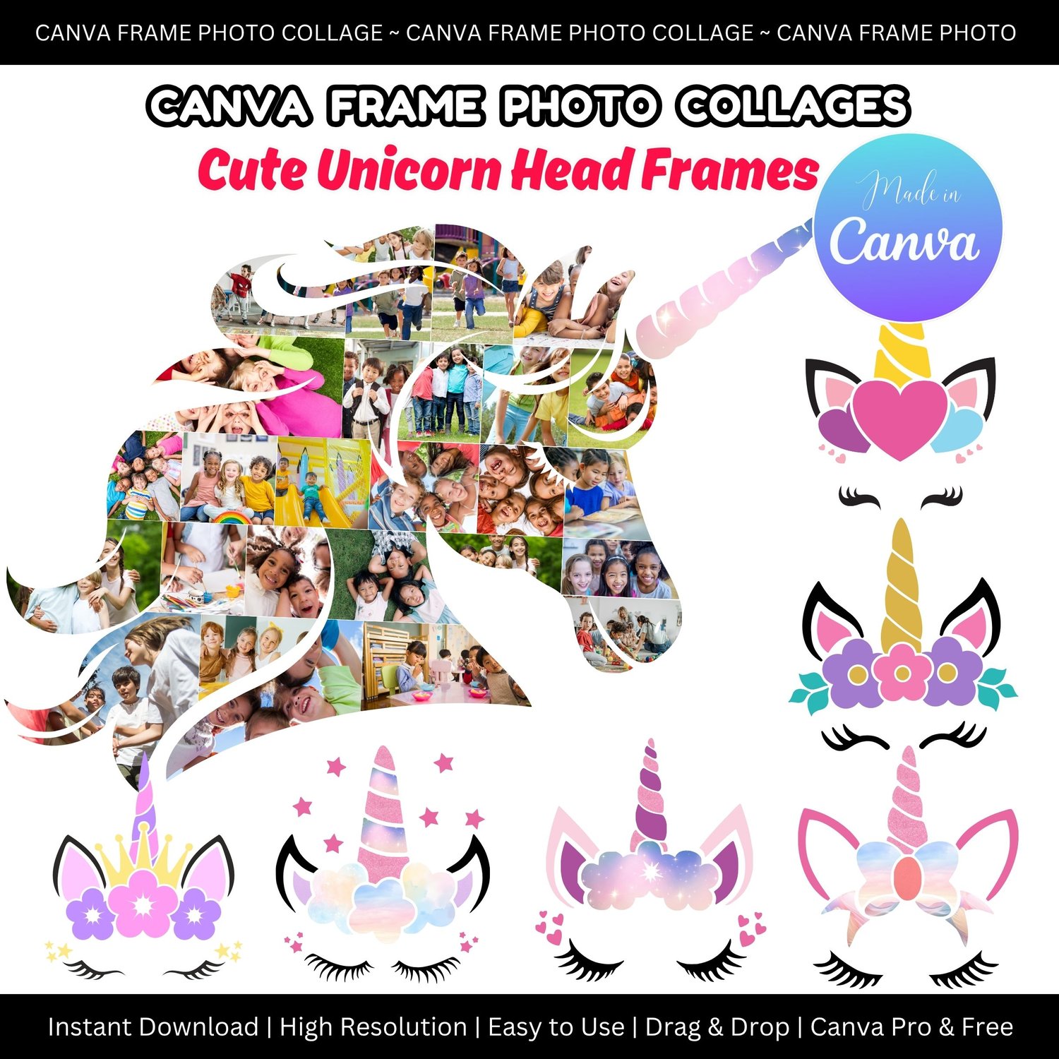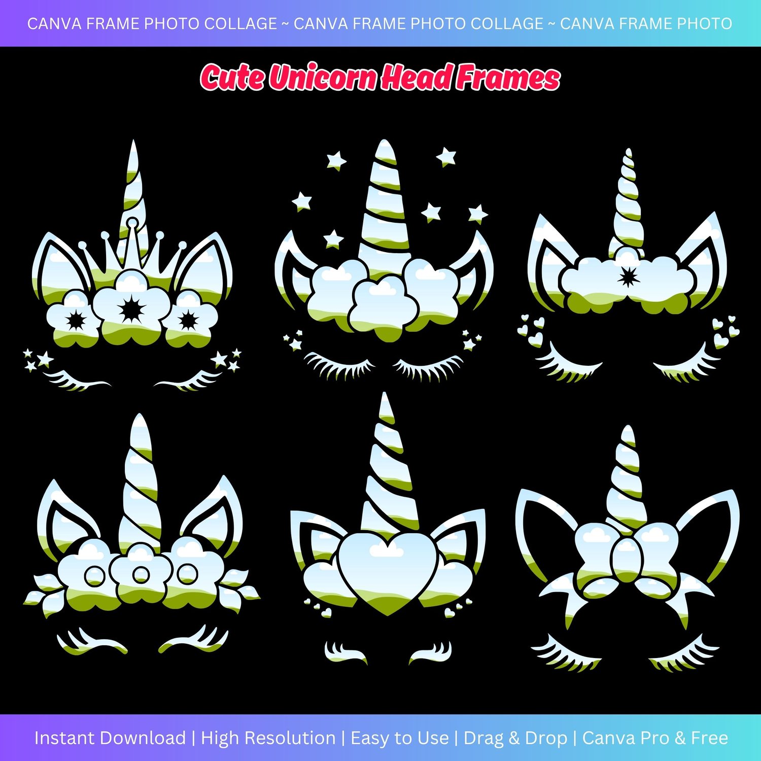 Canva Photo Collage - Cute Unicorn Head Frames