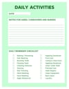Optimize your daily routines with our free Printable Daily Activity Form, Comes in black, blue, green and red. Designed for caregivers, families, and individuals, this form helps you plan, track, and manage daily activities with ease and precision.