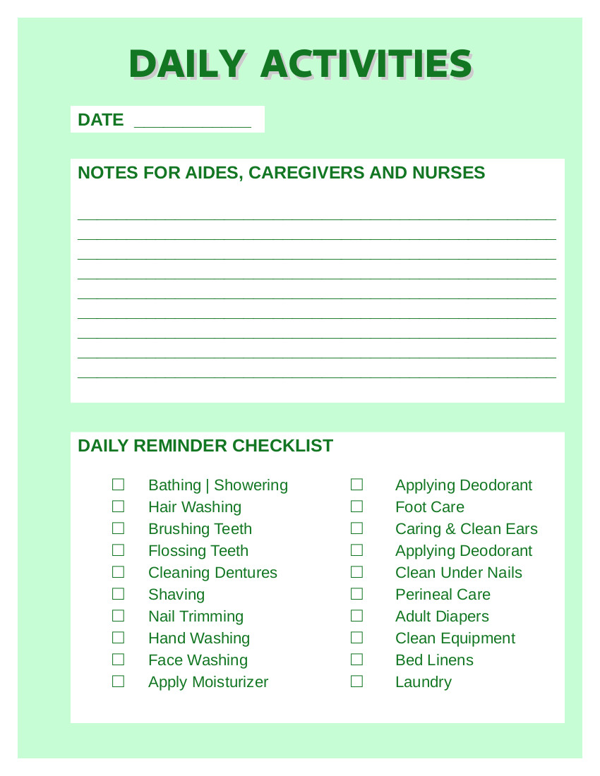 Free Printable Daily Activity Form