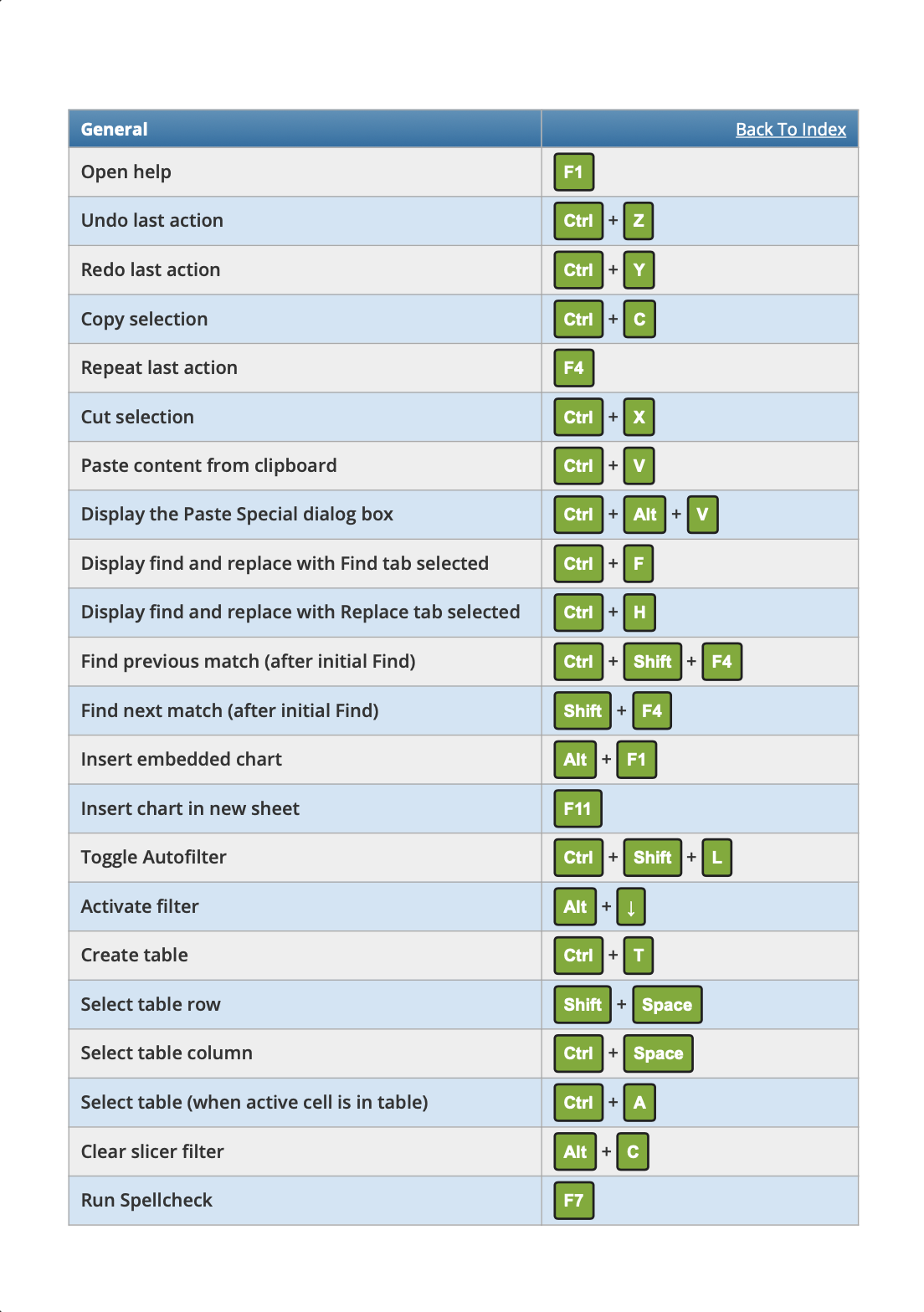 239 Excel Shortcuts for Windows – A complete list of time-saving shortcuts to improve Excel efficiency.