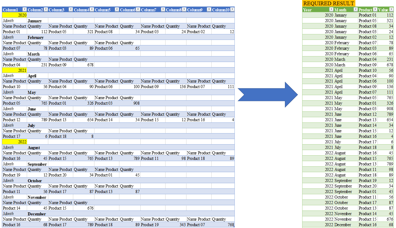Trick 016 Consolidate complex data tables into simple tables with power query