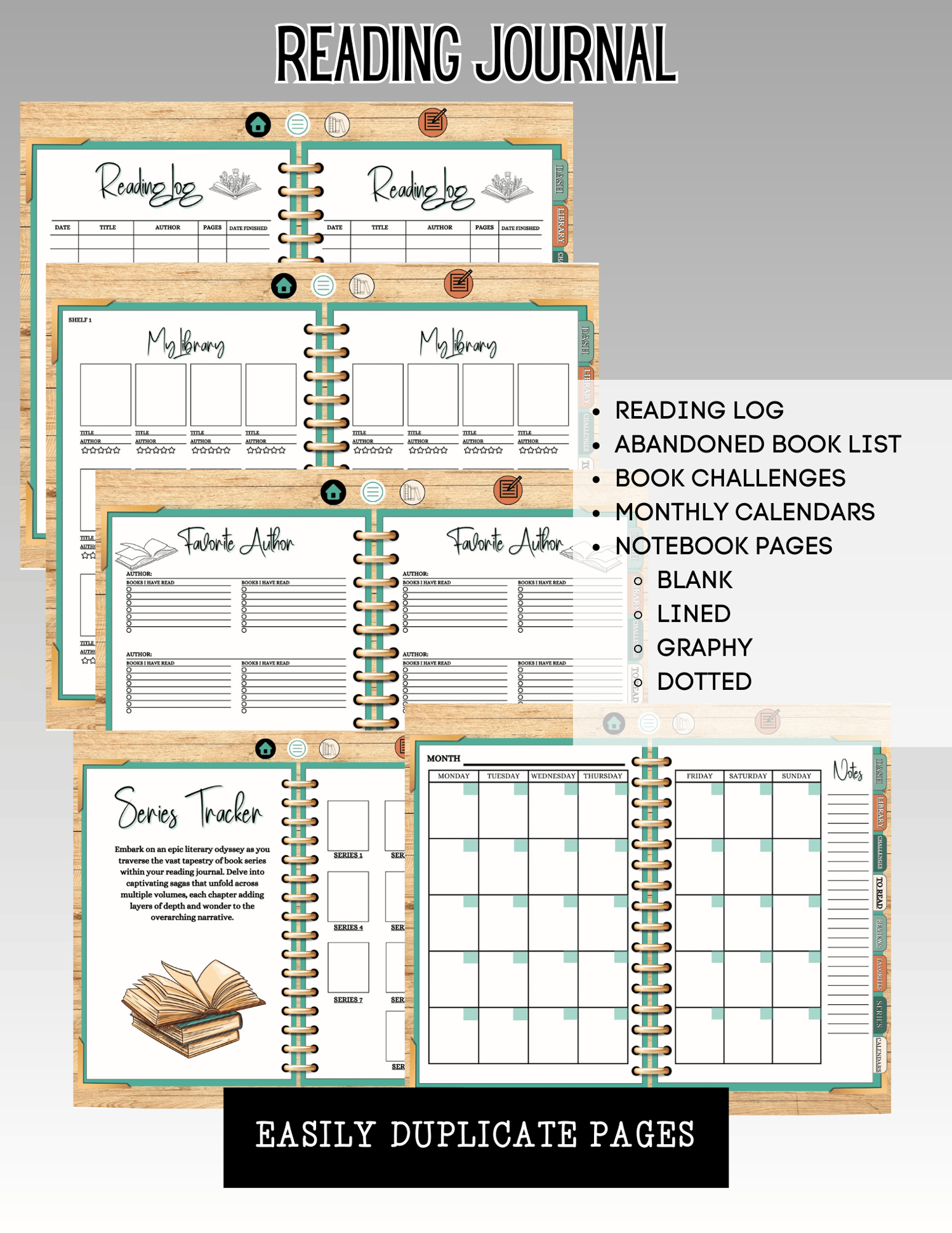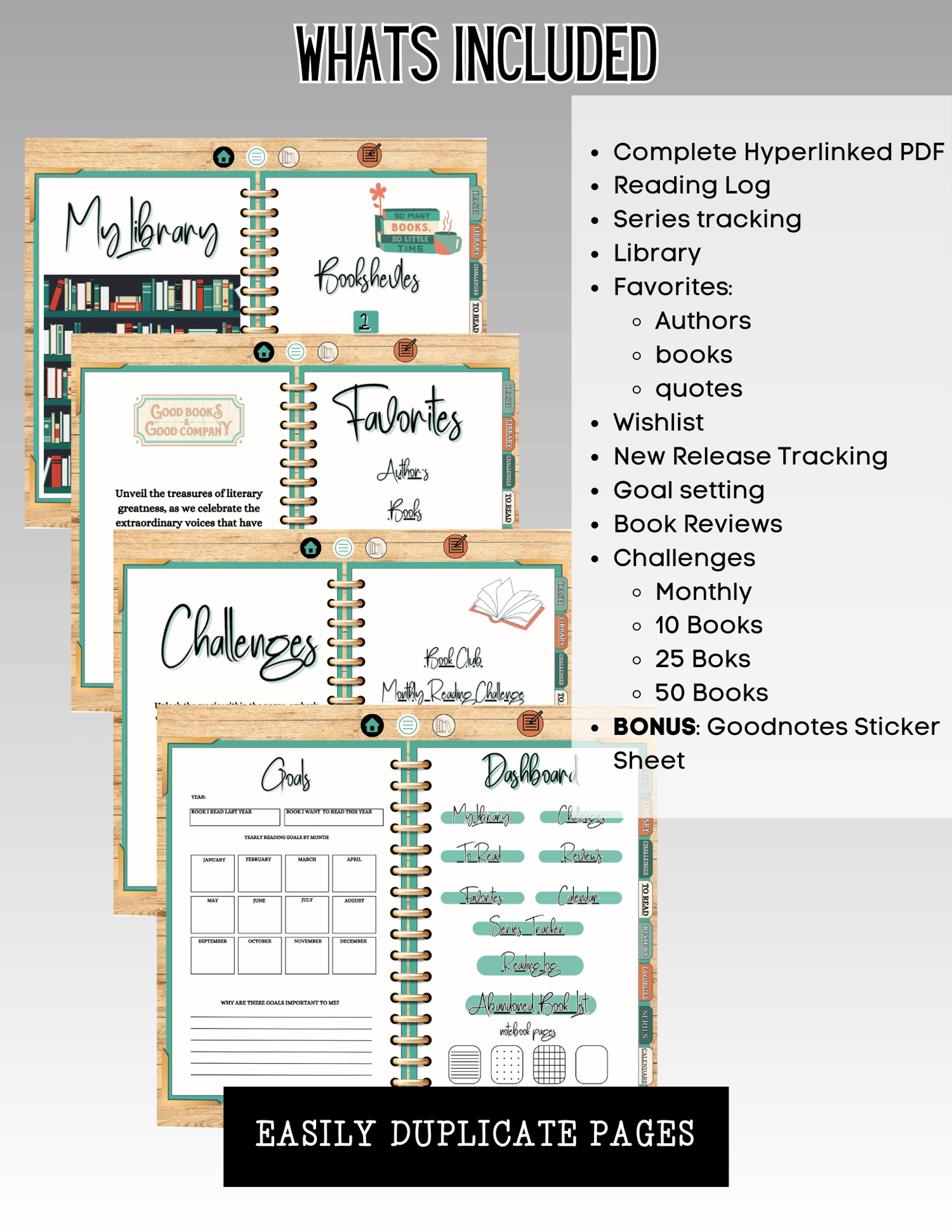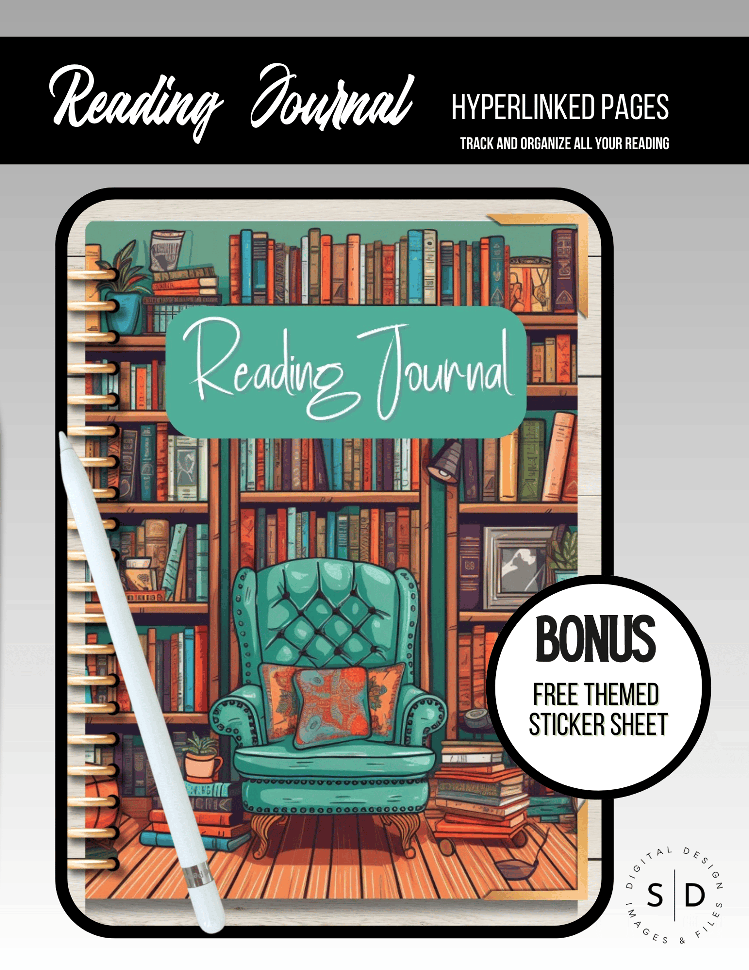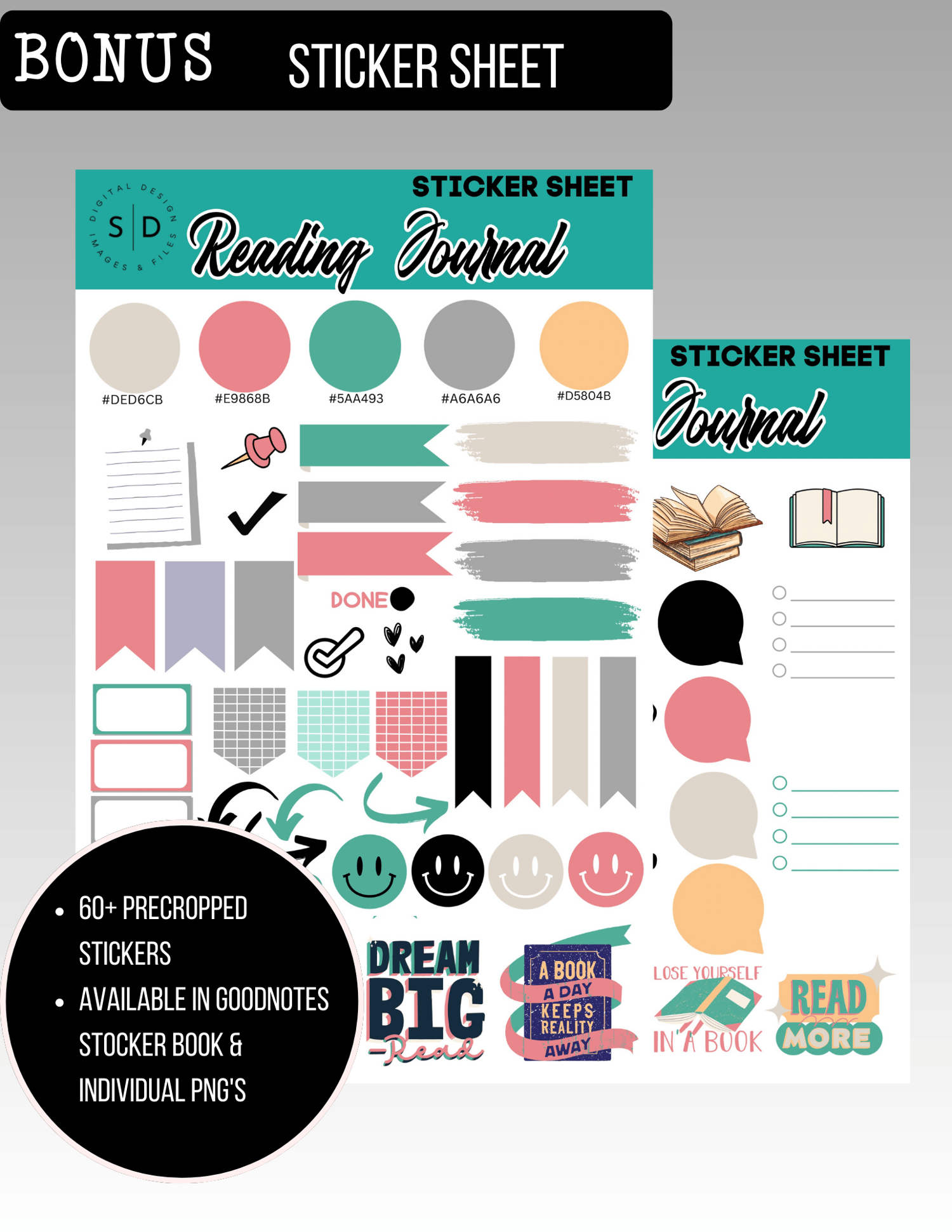 This Digital Reading Journal is an all-in-one journaling solution, offering a fully hyperlinked PDF and bonus stickers. It enables readers to easily track readings with logs, challenges, series trackers, and record favorite authors, books, and quotes. A must-have for any bibliophile!