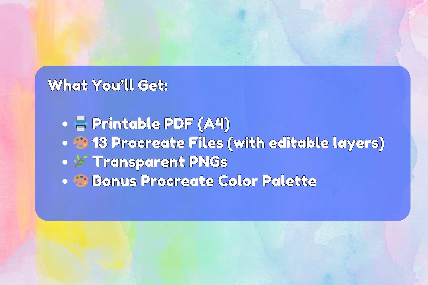 - ✅ 13 Individual Procreate Files – Each includes editable layers + built-in color layer