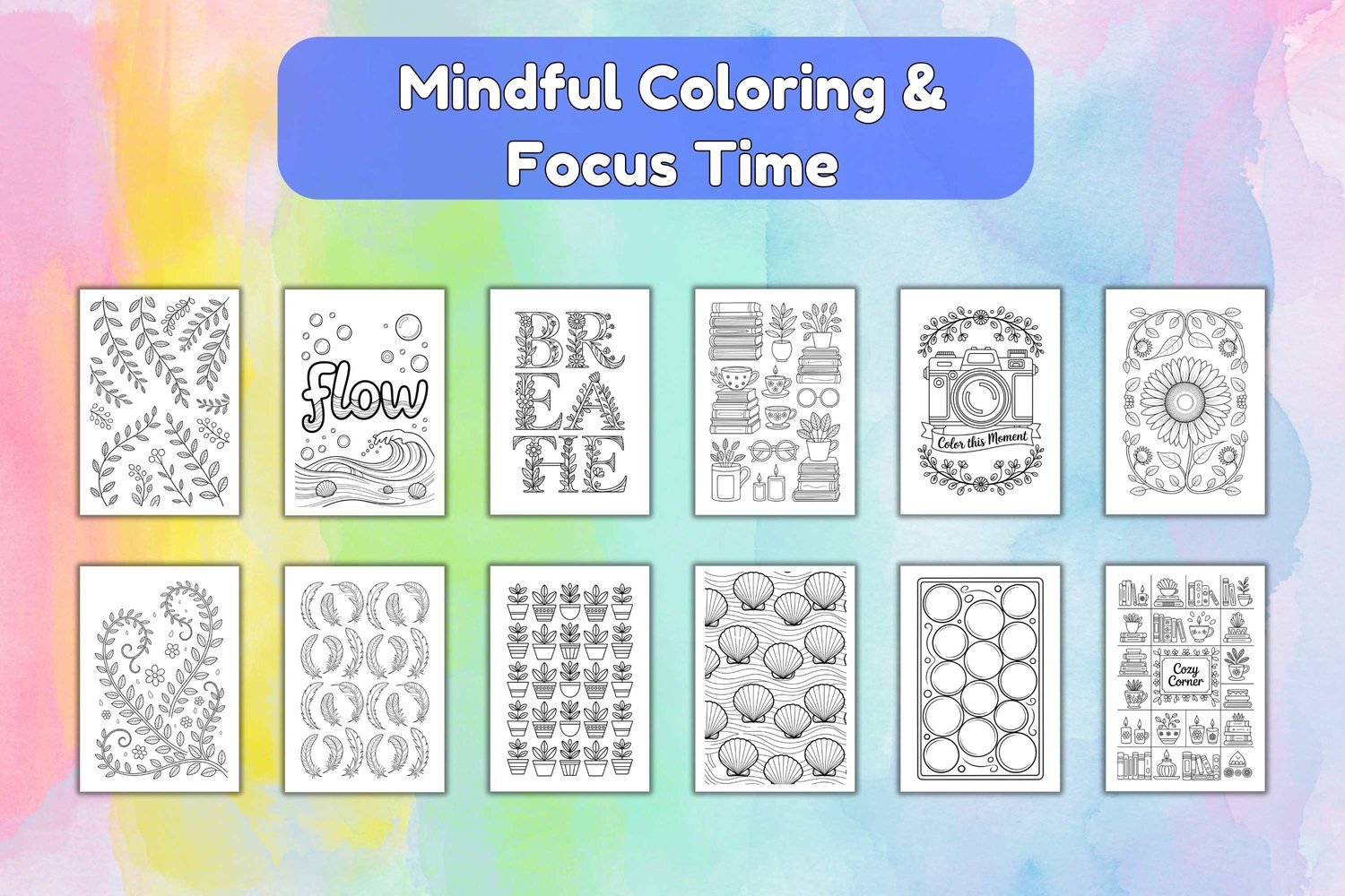 Bring calm and creativity together with this soothing set of 13 mindful coloring pages — designed for adults, creatives with ADHD, and anyone craving focus-friendly fun.
