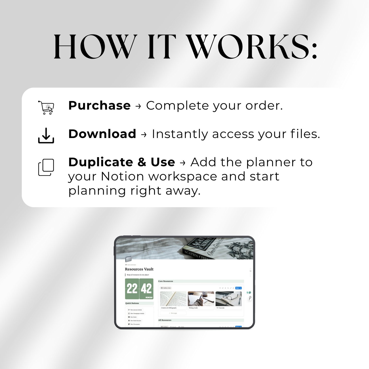 This template is designed specifically for use with the Notion app or website. It is not compatible with other platforms or applications.