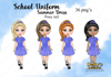 Instant digital download of our School Girl in Royal Blue Summer Dress, Ponytail and French Braids Uniform PNG (72 PNG’s included one)