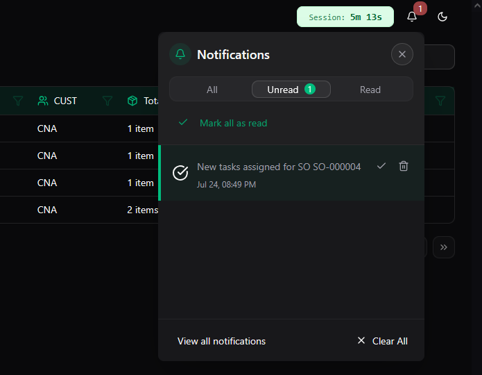 - Easy to define task.You can define task after creating sales order until goods shipped. Each task will deliver to every assigned user.