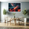 Volcanic Landscape with a Glowing Lave Flow against the Backdrop of a Starry Night Sky, Yellow Red Eruption, Natured Landscape, Home Décor Wall Art, Digital Download Art