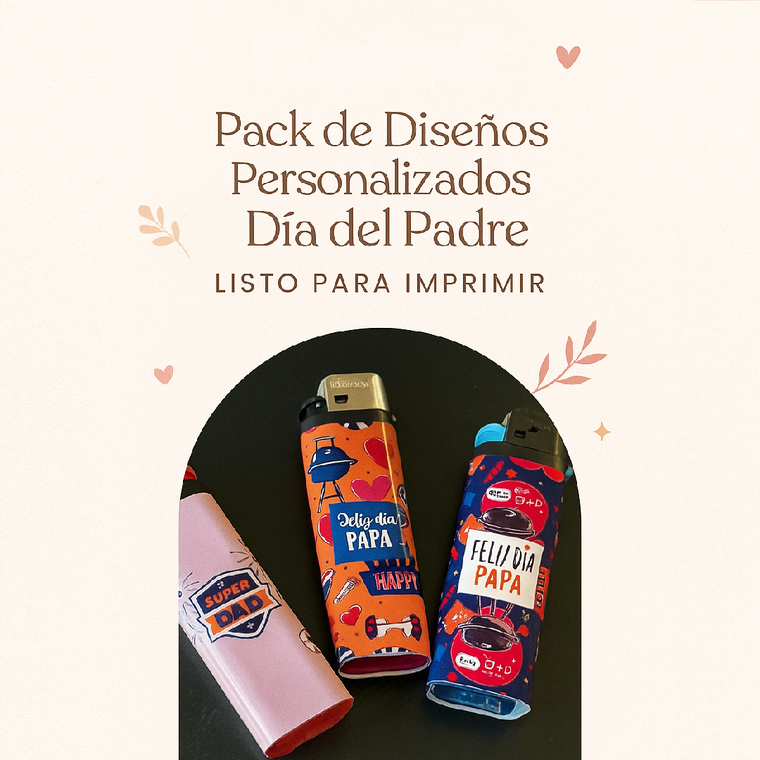 Archivo Diseño digital de encendedores personalizados creado con inteligencia artificial y editado en Canva, ideal para regalar o vender en el Día del Padre.