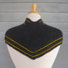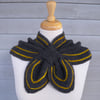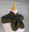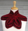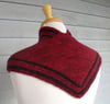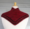 Is it a shawlette? Is it a neck warmer? It’s both, and an elegant and stylish way to stay warm. The triangular shawl back tucks into your coat so that sudden gust of wind can’t get in between your scarf and your coat, the crossed keyhole front pieces do the same for your chest, and the stylish lines and surface crochet decoration (completely explained in the pattern) make it stylish enough to keep on long after your coat comes off.