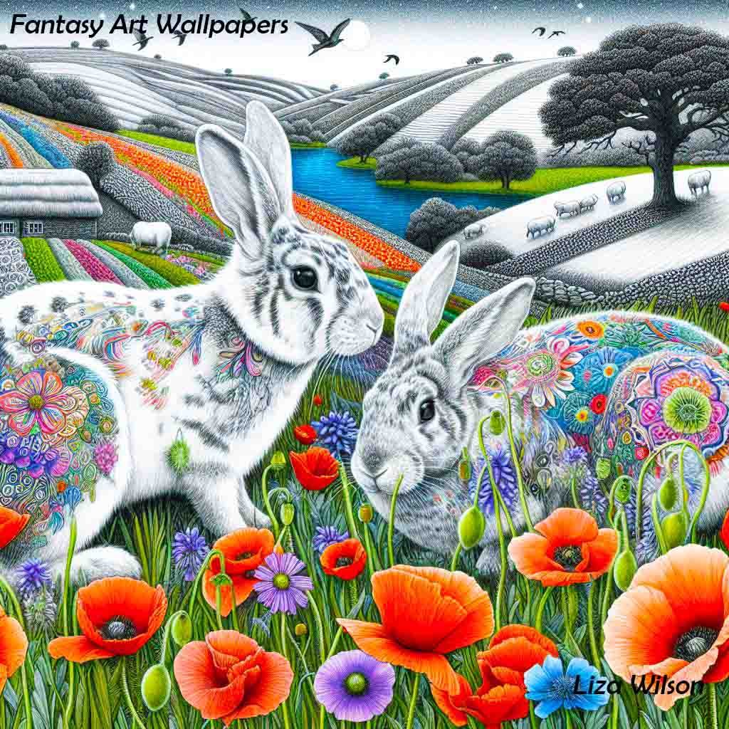 WHimSicaL PatteRneD RAbbiTs in MeAdowS 13