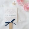Apportez une touche d'élégance à votre mariage avec nos programmes éventails de mariage de la Collection LEZAN. Ces créations uniques allient fonctionnalité et esthétique, offrant à vos invités une expérience agréable tout en restant un souvenir précieux de ce jour exceptionnel.