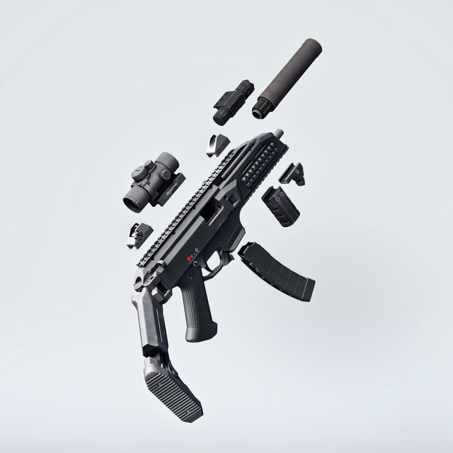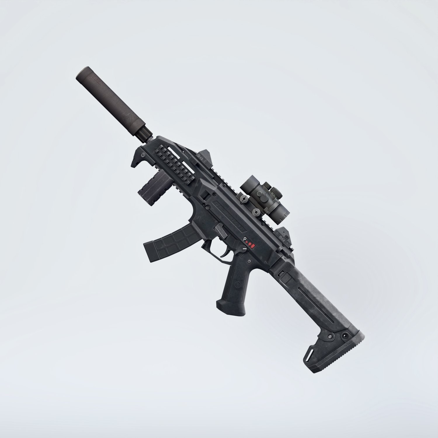 A super cool looking 9mm submachine gun, developed and produced in Czech Republic. Produced since he early 2000s, the gun is in use till today. Was adopted by some special forces around the world, mainly by police and special operations units. The prop is rigged and converted for use with DAZ. Trigger, safety, bolt etc also rigged for more realistic pictures. A usual, has some additional accessories, like a silencer, a red dot, lase and a front grip. If you're making a spy or a soldier or any other special people- this gun suits it all.