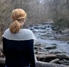 February is the month of the Snow Moon. This shawl is a wispy little shawl that just hints at snow. It is worked in one piece from the bottom edge. The lace is followed by short rows to give the shawl its crescent shape. An I-cord bind off along the top edge makes a neat edge that prevents the shawl from rolling.