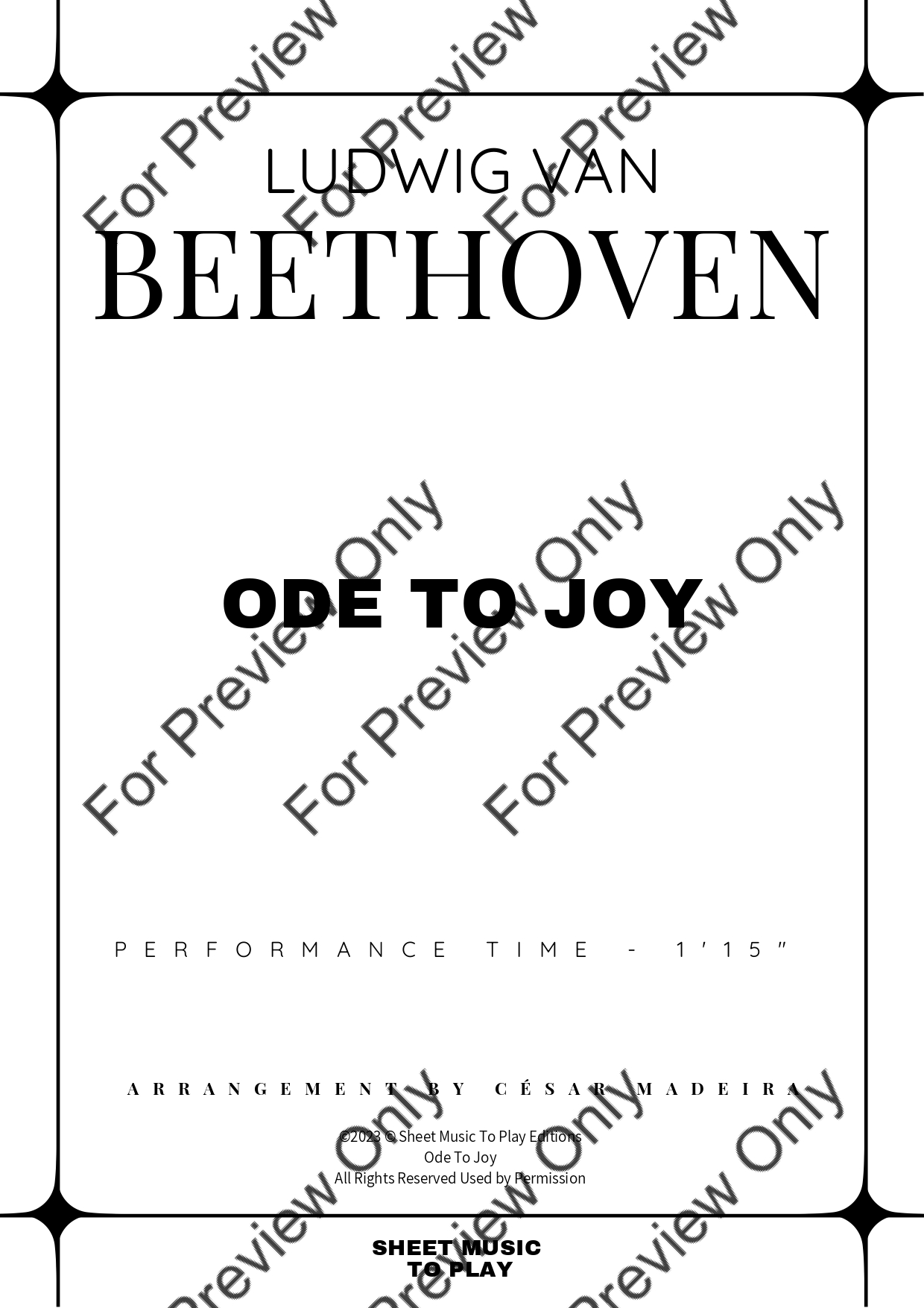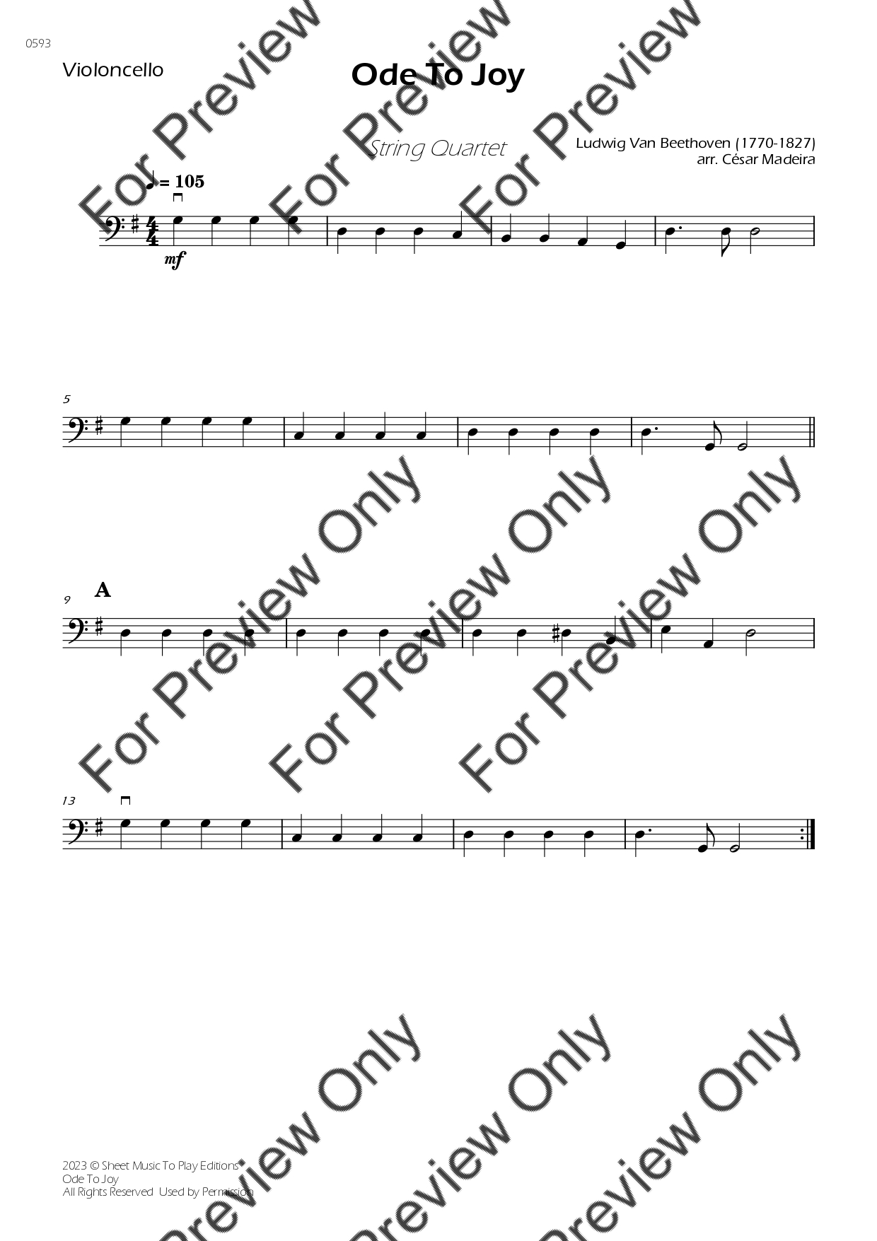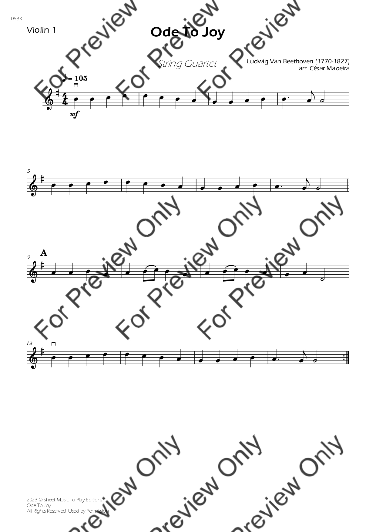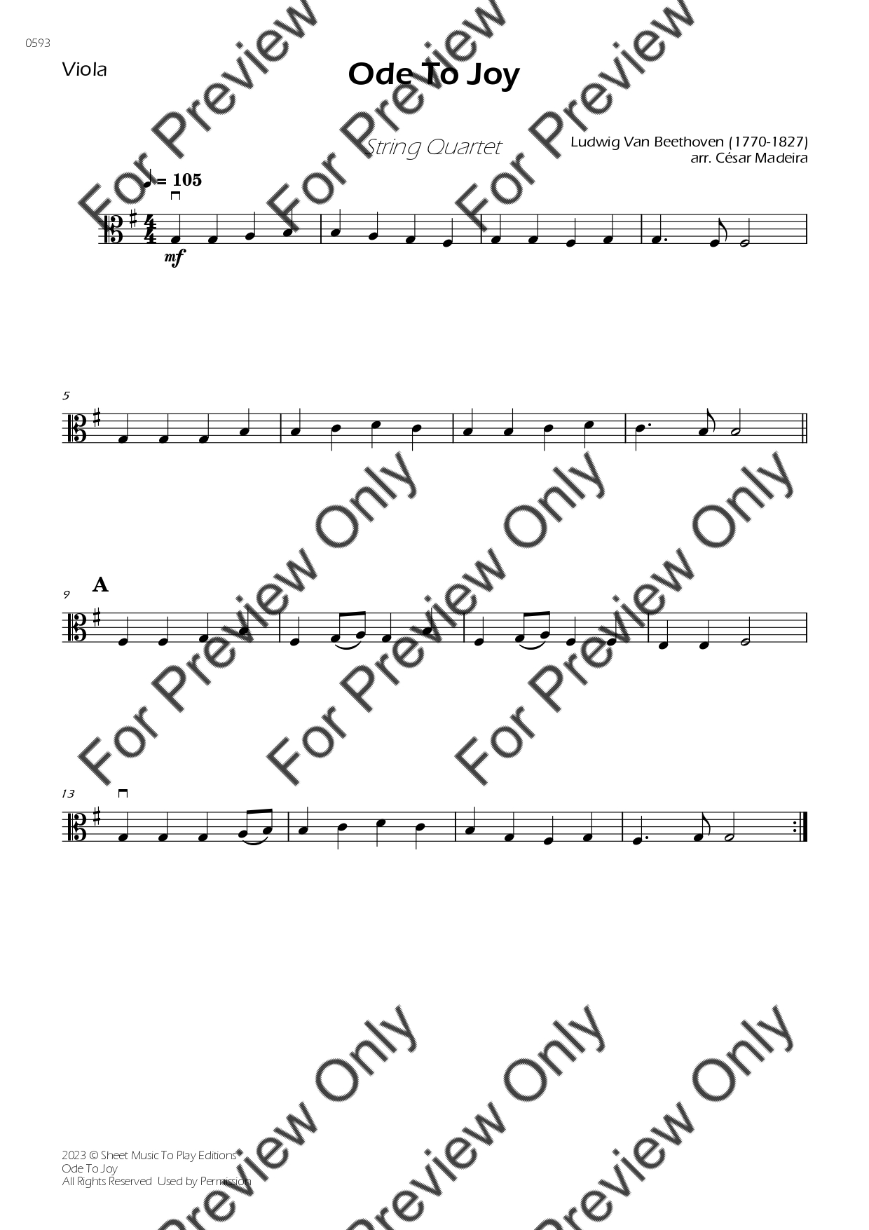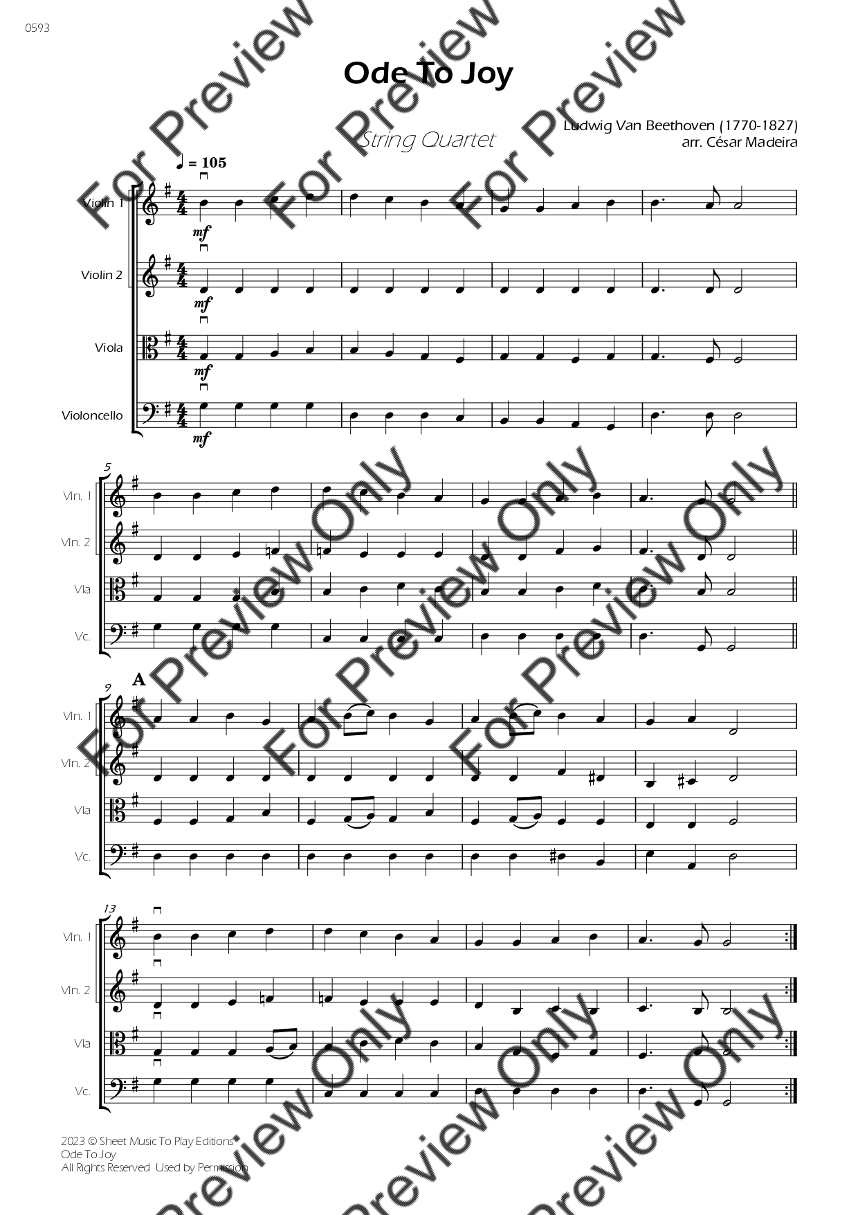 Ode To Joy by Ludwig Van Beethoven. Arrangement for Easy String Quartet - Violin 1, 2, Viola and Violoncello. With Full Score and Individual Parts. Have fun!