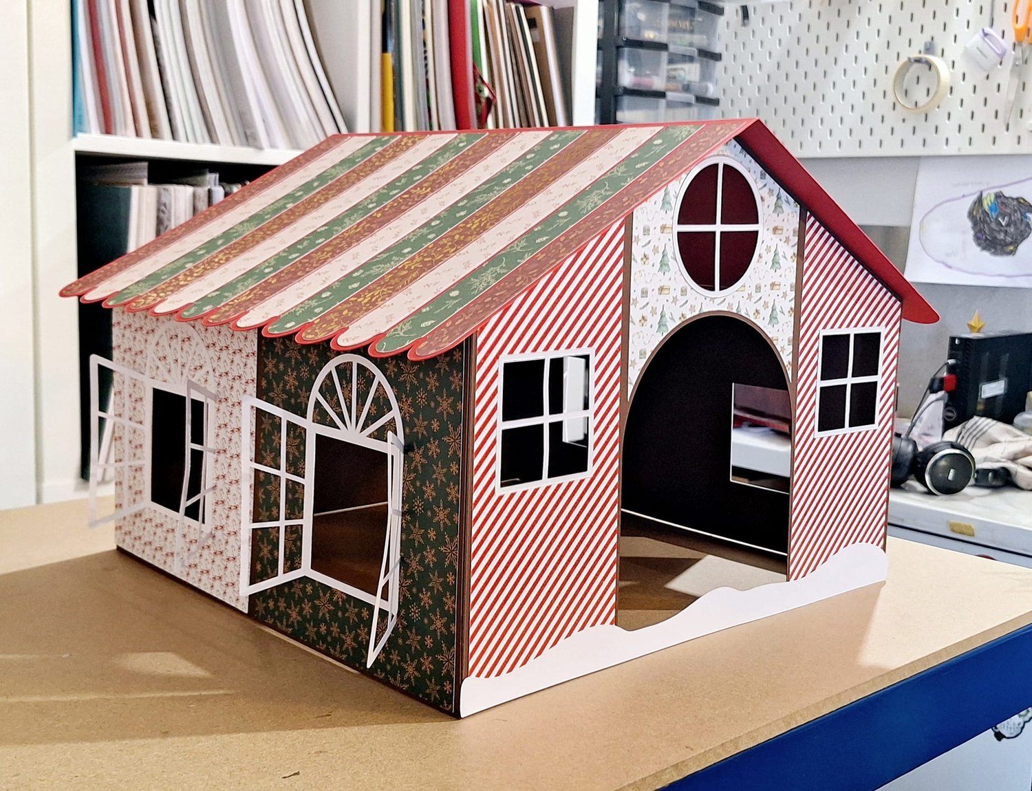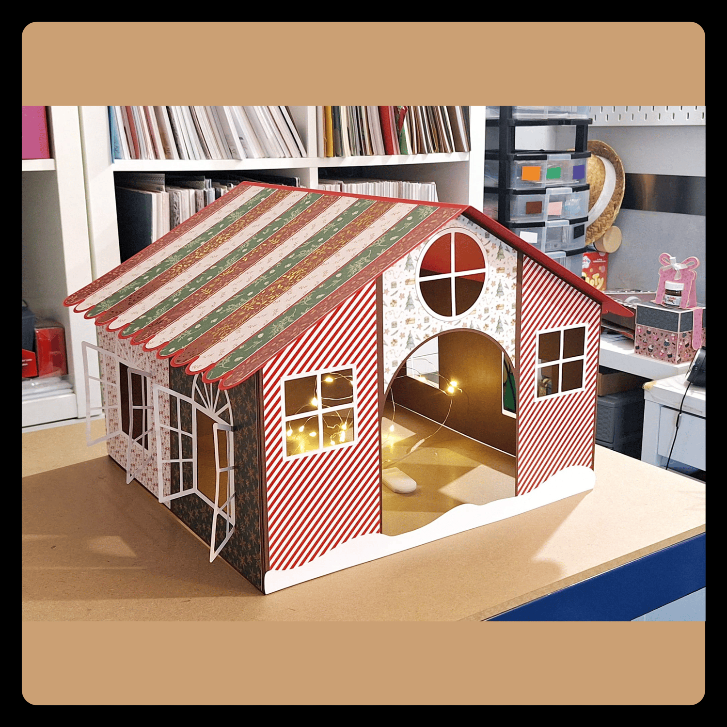 - Des feuilles cartonnées 30x30 220 g environ à motif de Noël ou autres pour les décors des murs et du toit