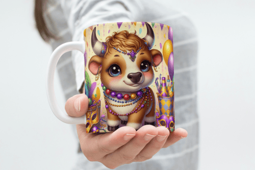 Celebrate Mardi Gras with a cute twist! Create high-quality, festive mugs that bring the fun and joy of the parade to every sip. 🎭🐄🎉