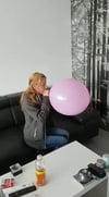 Aylise blows this pink punch balloon until it pops with a loud bang!