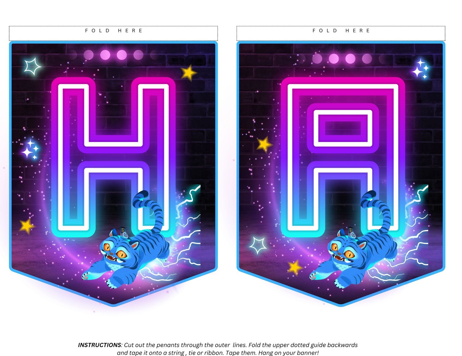 5) After printing, cutout the outer guides of the pennants. Fold the upper guide backwards so you have a space for your string.