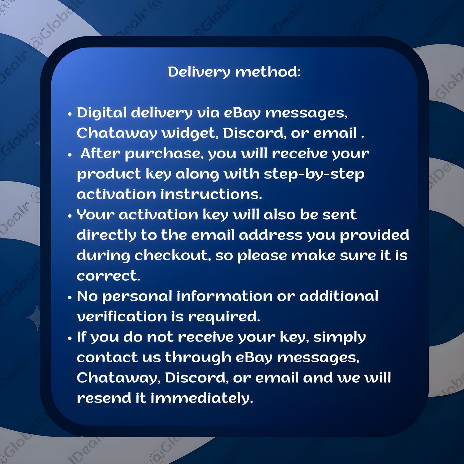 - After purchase, you will receive your product key along with step-by-step activation instructions.