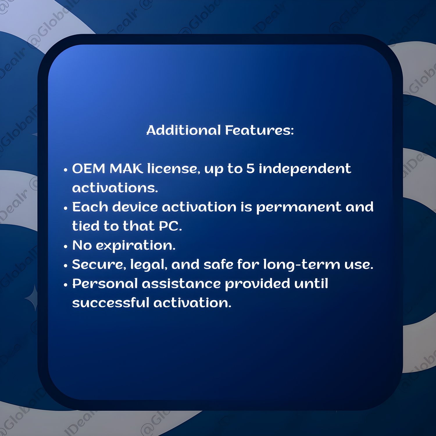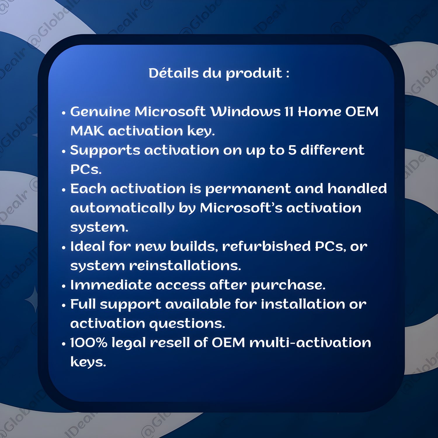 - Genuine Microsoft Windows 11 Home OEM MAK activation key.