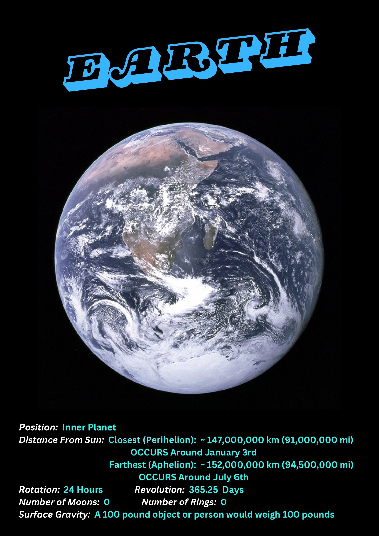 Discover the wonders of our home planet with the 4-page ‘COSMIC TIDBITS Earth FACTS’ fact sheet. This informative guide provides an in-depth look at Earth, the only known celestial body to support life. Learn about its unique features, from the diverse ecosystems and climates to the tectonic activity that shapes its landscapes. Understand the role of Earth’s magnetic field, its atmospheric composition, and the water cycle that sustains life. Designed for learners from middle school to adults, this fact sheet is an invaluable resource for those seeking to understand more about our extraordinary planet Earth.”