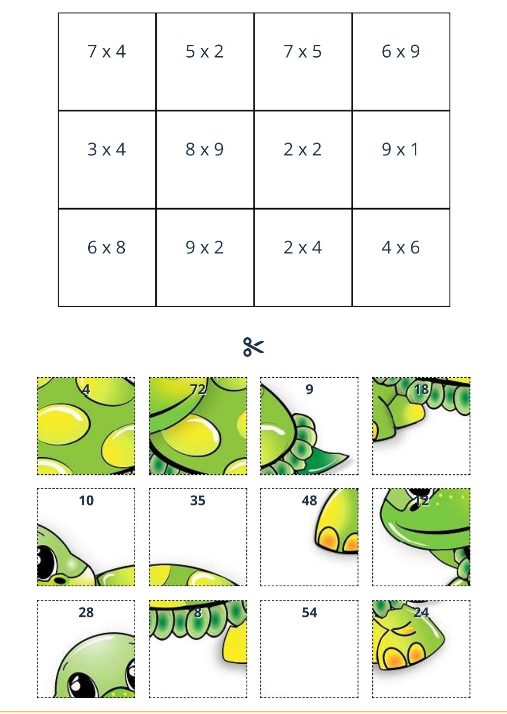 Printable Multiplication puzzles in PDF