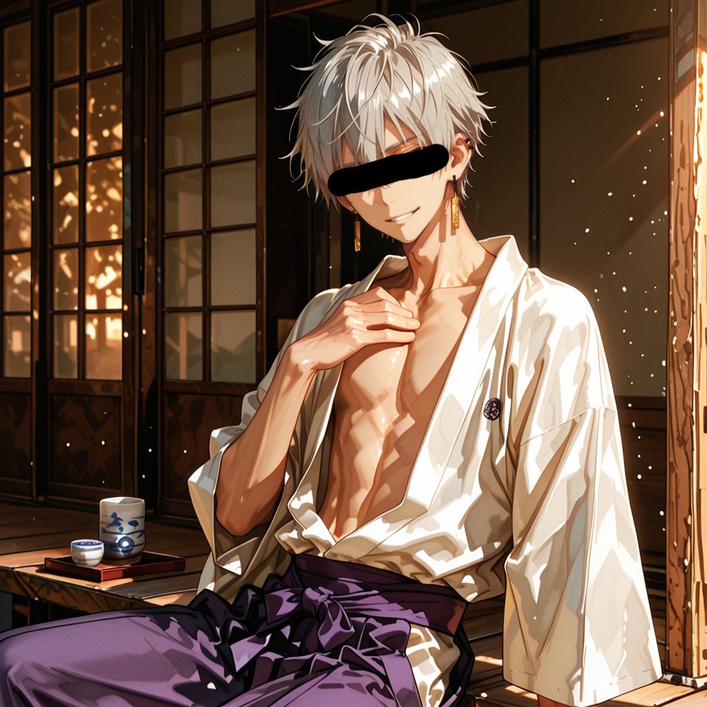 日本の正月をテーマに、着物を着用している男性を、キャラクターごとにお任せ作成しました。男らしいキャラクターの魅力を思い切って表現しました。