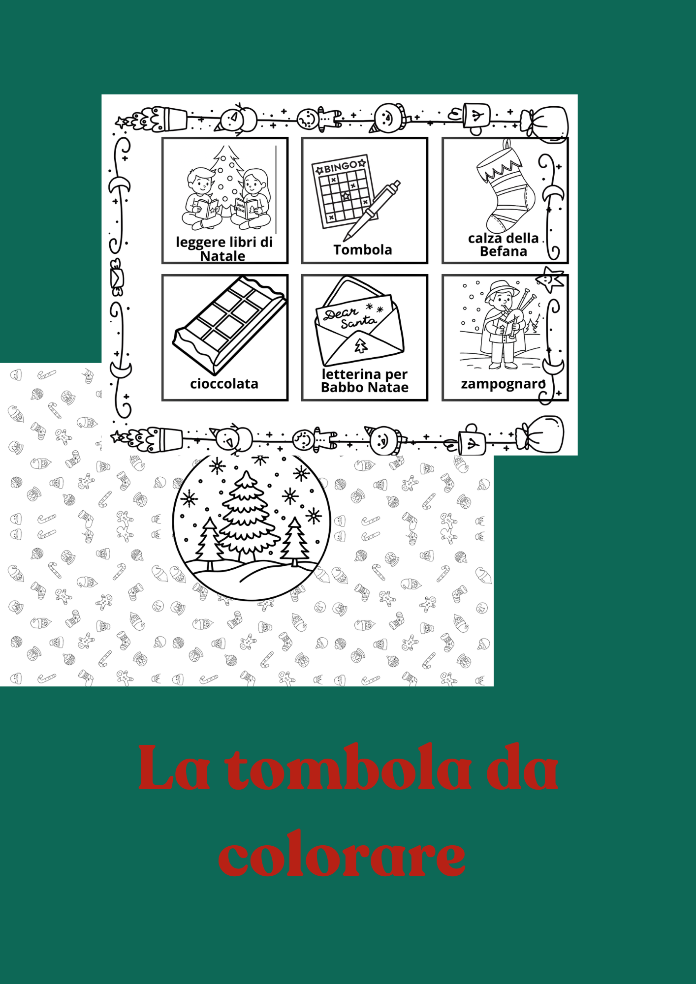 - disegni che raccontano la magia delle feste, fino all’arrivo della Befana e al ritorno a scuola.