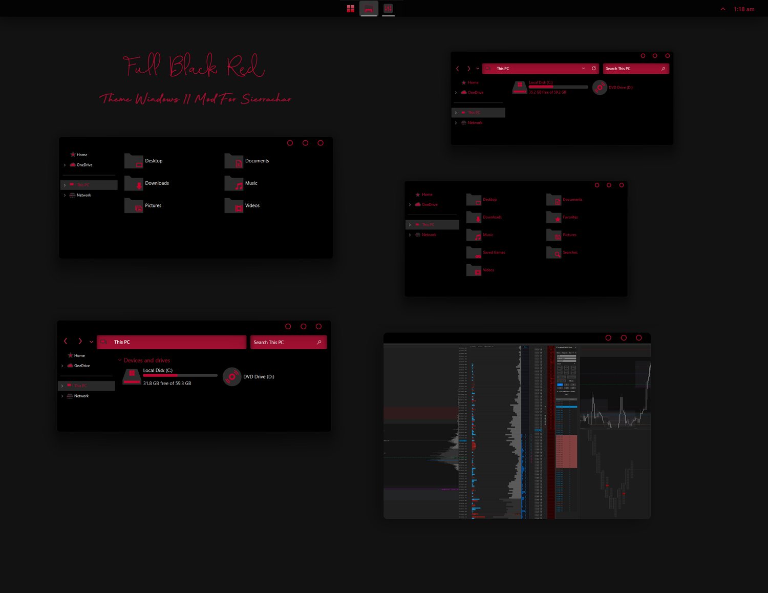 Full Black Red Theme Windows 11 Mod For Sierrachart
