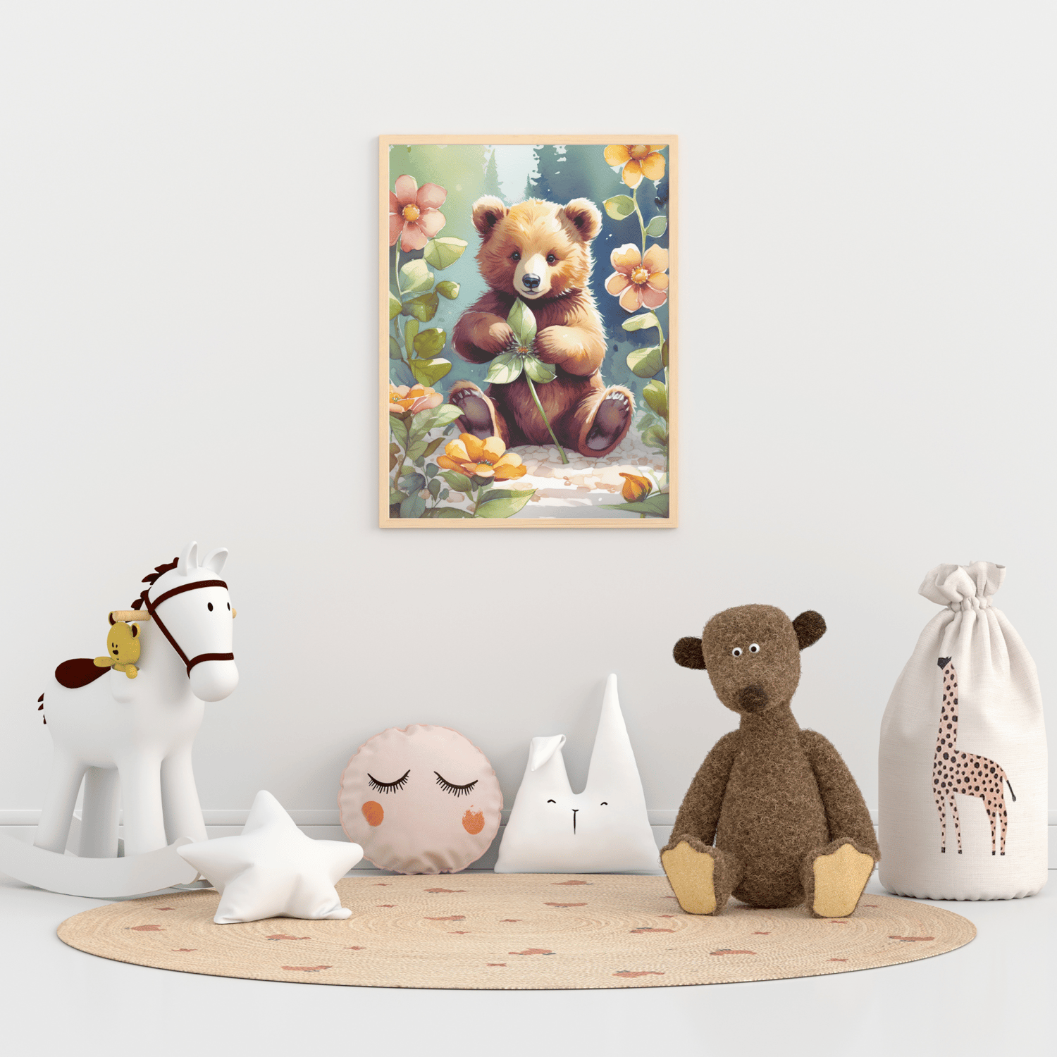 Enhance your child's room with a touch of charm and whimsy with this high-quality watercolor painting of a cute bear cub. This adorable printable painting is perfect for adding a playful and colorful element to any nursery or children's room. Simply purchase, download and print it on premium paper or canvas. The vibrant colors and intricate details of this artwork will captivate your little one's imagination. Hang it up as a focal point or incorporate it into a gallery wall to create a space that is both stylish and stimulating for your child. Spark their creativity and bring joy to their world with printable painting for children's rooms.