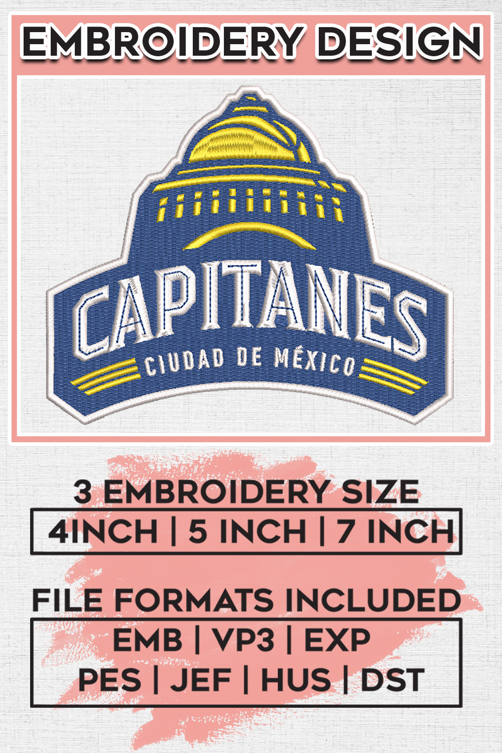 NBA G League Mexico City Capitanes Team Writing Logo Embroidery Designs, NBA G League Mexico City Capitanes Logo Machine Embroidery Files, NBA G League Basketball Team Logo embroidery designs, NBA G League Capitanes, Digital Download