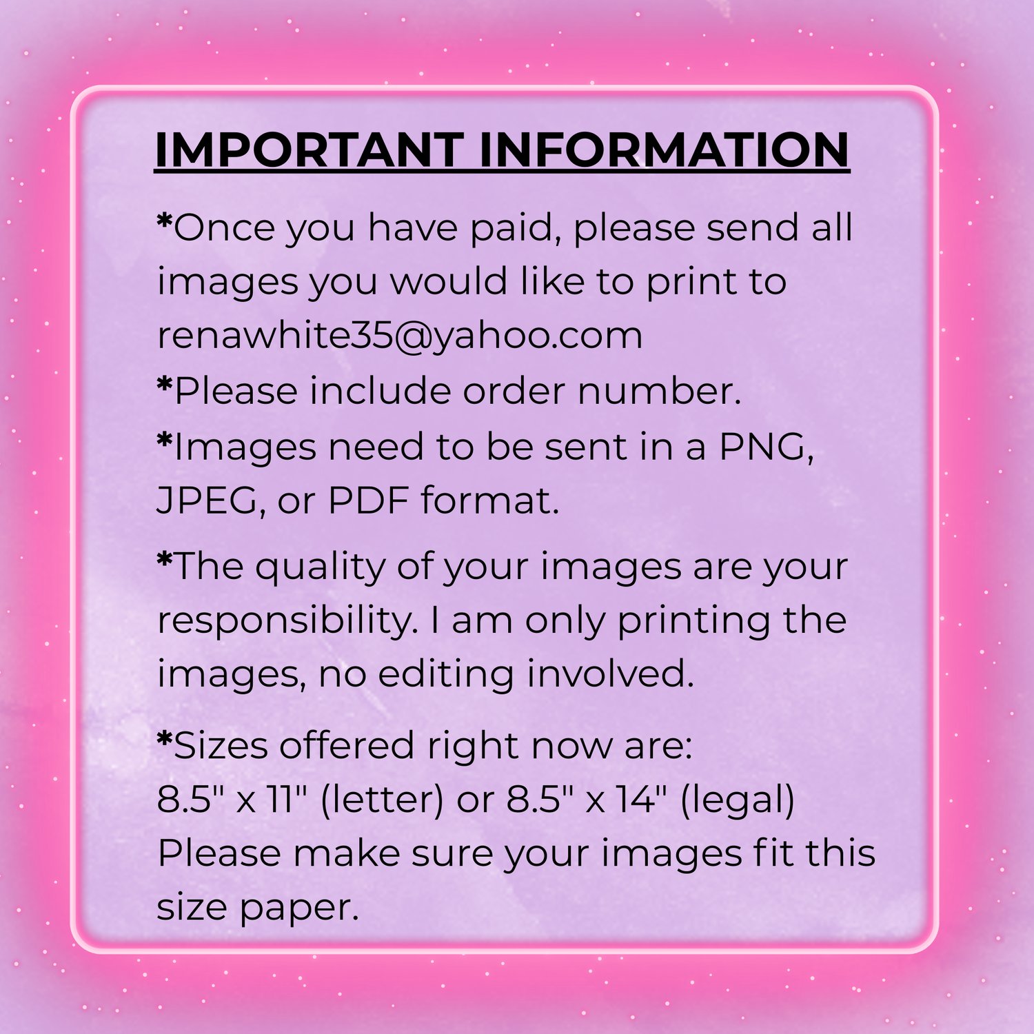 Please do not send screenshots, remember, what you send is what we print.