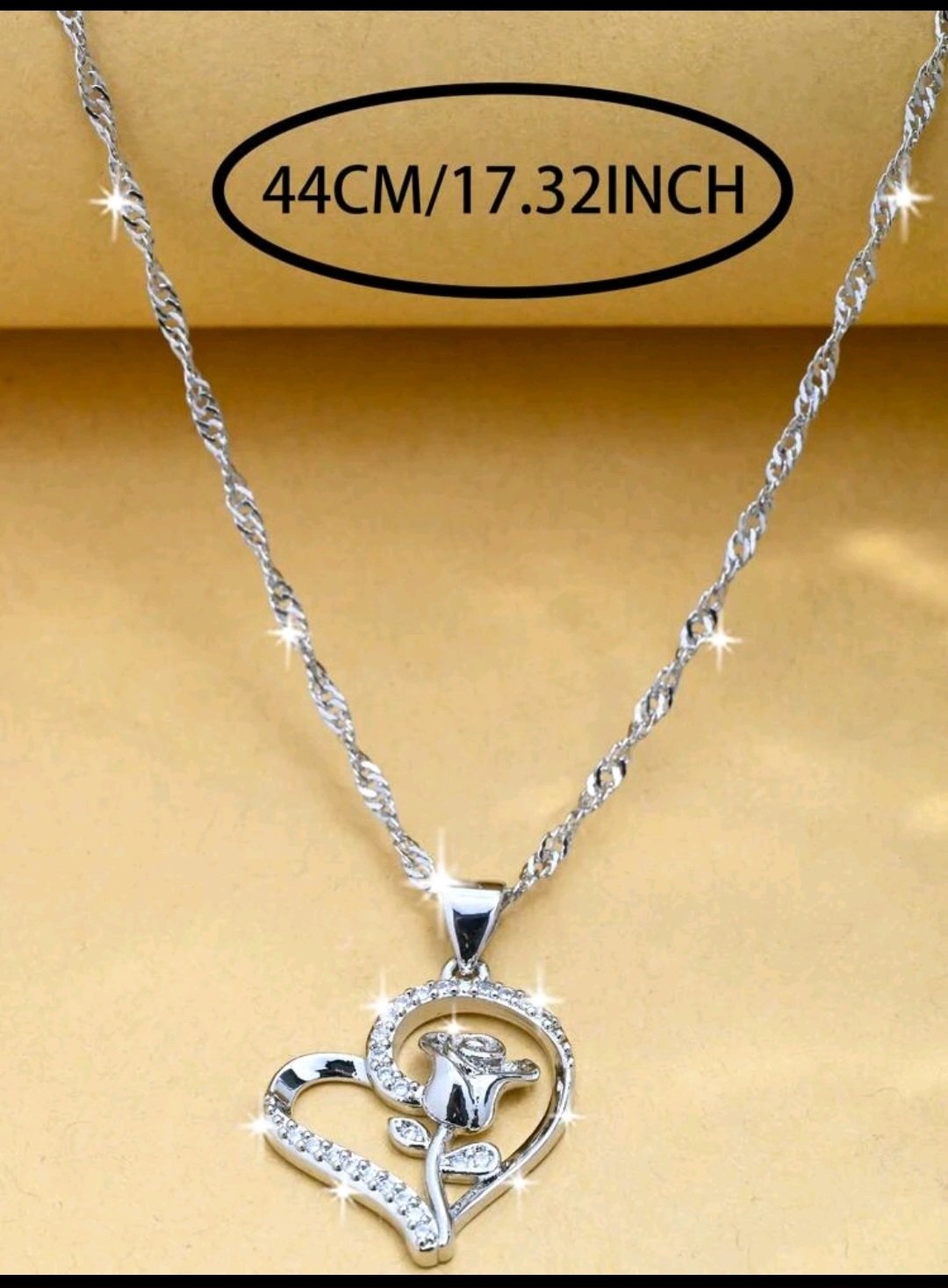 1pc Glamorous Copper Rhinestone Heart Pendant Necklace For Women For Festival Gift Copper Jewelry