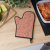 These oven mitts sport a metallic, 100% cotton back to protect hands from nasty burns. They also feature a fabric loop for hanging and easy storage.