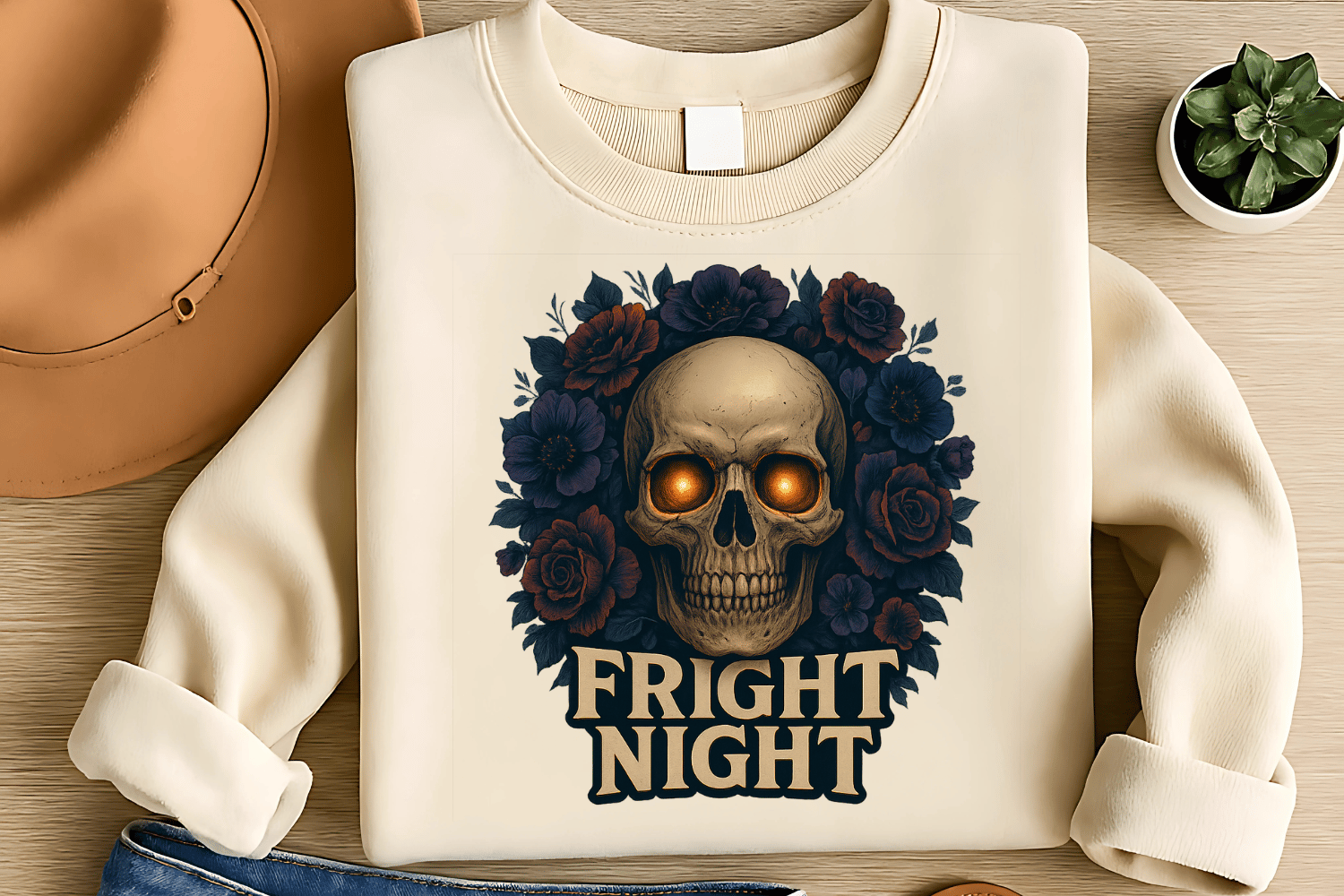 Bring a hauntingly beautiful touch to your Halloween projects with this Spooky Bloom Skull Sublimation PNG! Featuring a “Fright Night” skull adorned with intricate floral designs, this creepy floral fusion is perfect for apparel, gifts, and eerie décor.