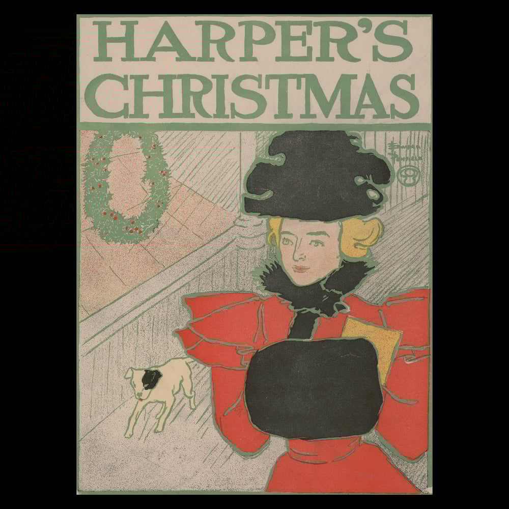 Vintage Christmas card (1896) by Edward Penfield.