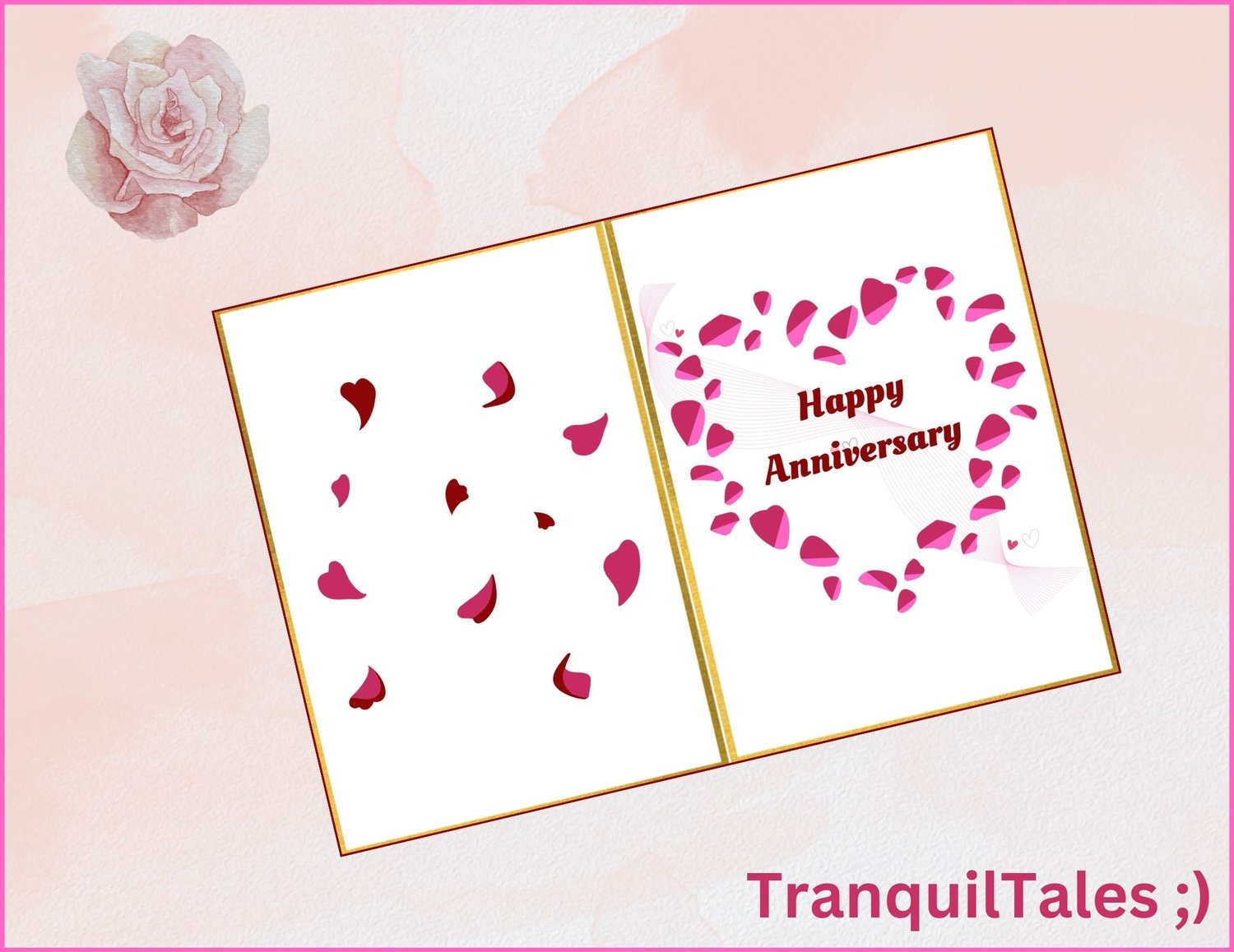 ANNIVERSARY CARD - BEAUTIFUL ROSE PETAL THEME BASED - GREETINGS FOR BOYFRIEND / GIRLFRIEND / LOVER / HUSBAND / WIFE - HEART SHAPED - ROSE PETALS - ROSES
