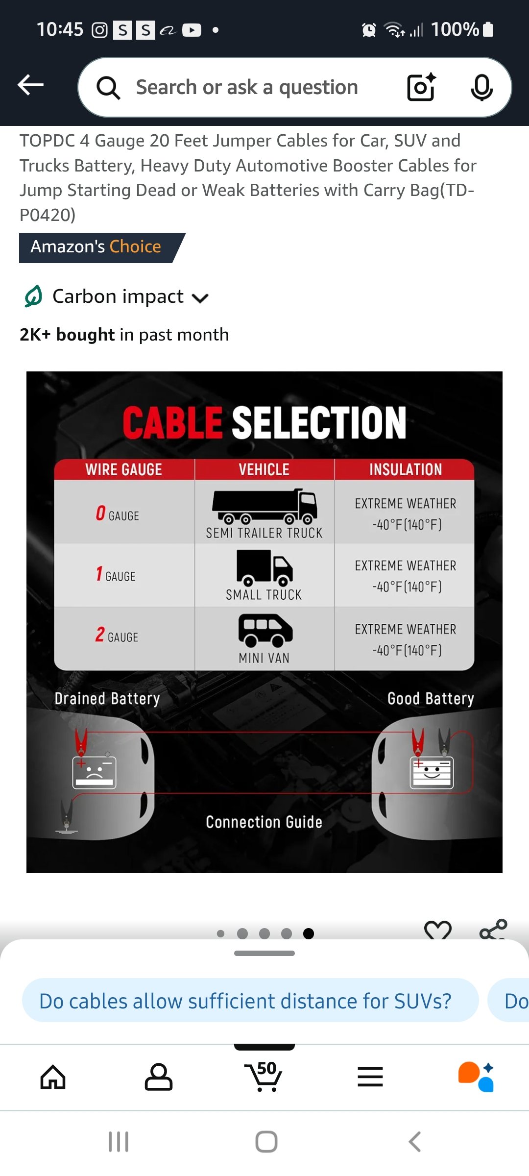 TOPDC 4 Gauge 20 Feet Jumper Cables for Car, SUV and Trucks Battery, Heavy Duty Automotive Booster Cables for Jump Starting Dead or Weak Batteries with Carry Bag(TD-P0420)Product details