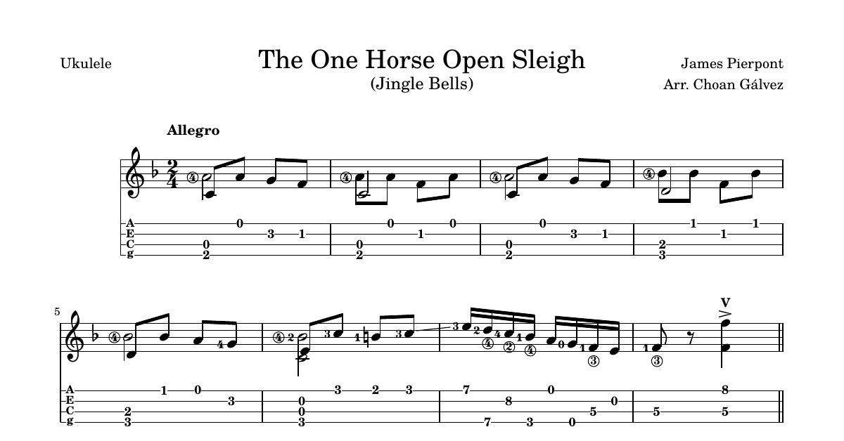 The One Horse Open Sleigh (Jingle Bells w/ original chorus) - Solo ukulele tablature