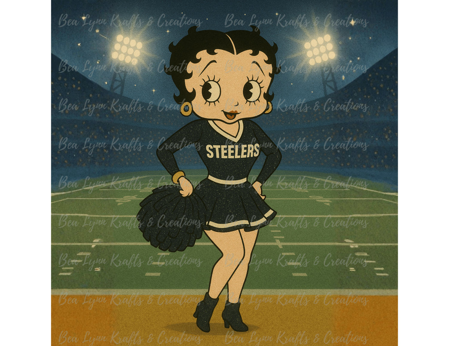 Betty Boop Steelers Cheerleader PNG – Retro Black Glitter Fan Art