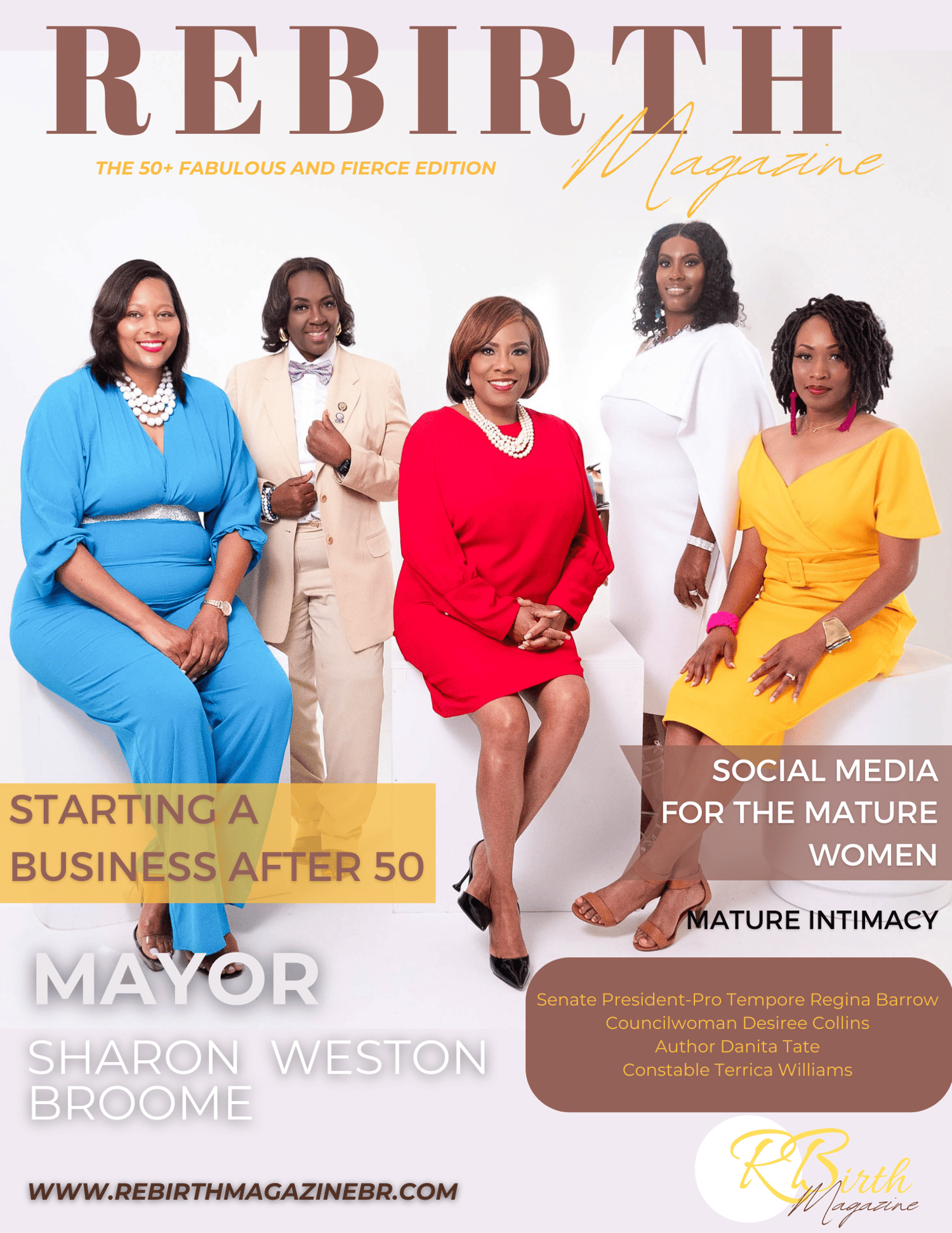 Step into the world of inspiration with the 50+ Fabulous & Fierce Edition of Rebirth Magazine! This special digital edition celebrates the power, grace, and resilience of women aged 50 and beyond, highlighting their incredible stories of success, leadership, and empowerment.