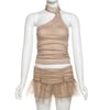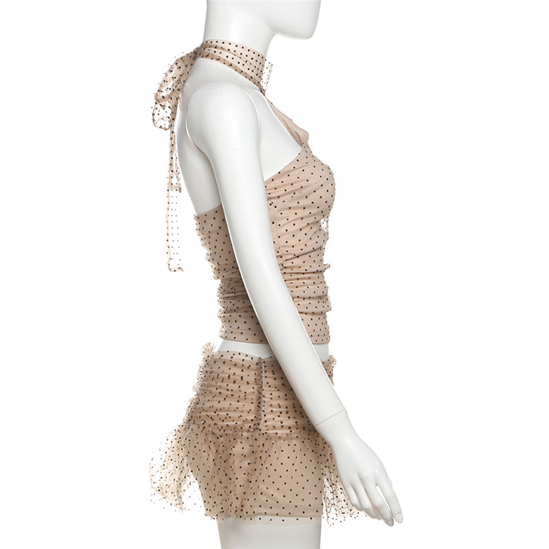 Niche designer French fairy khaki polka dot slim halter suspender low-waist mini skirt-pants set