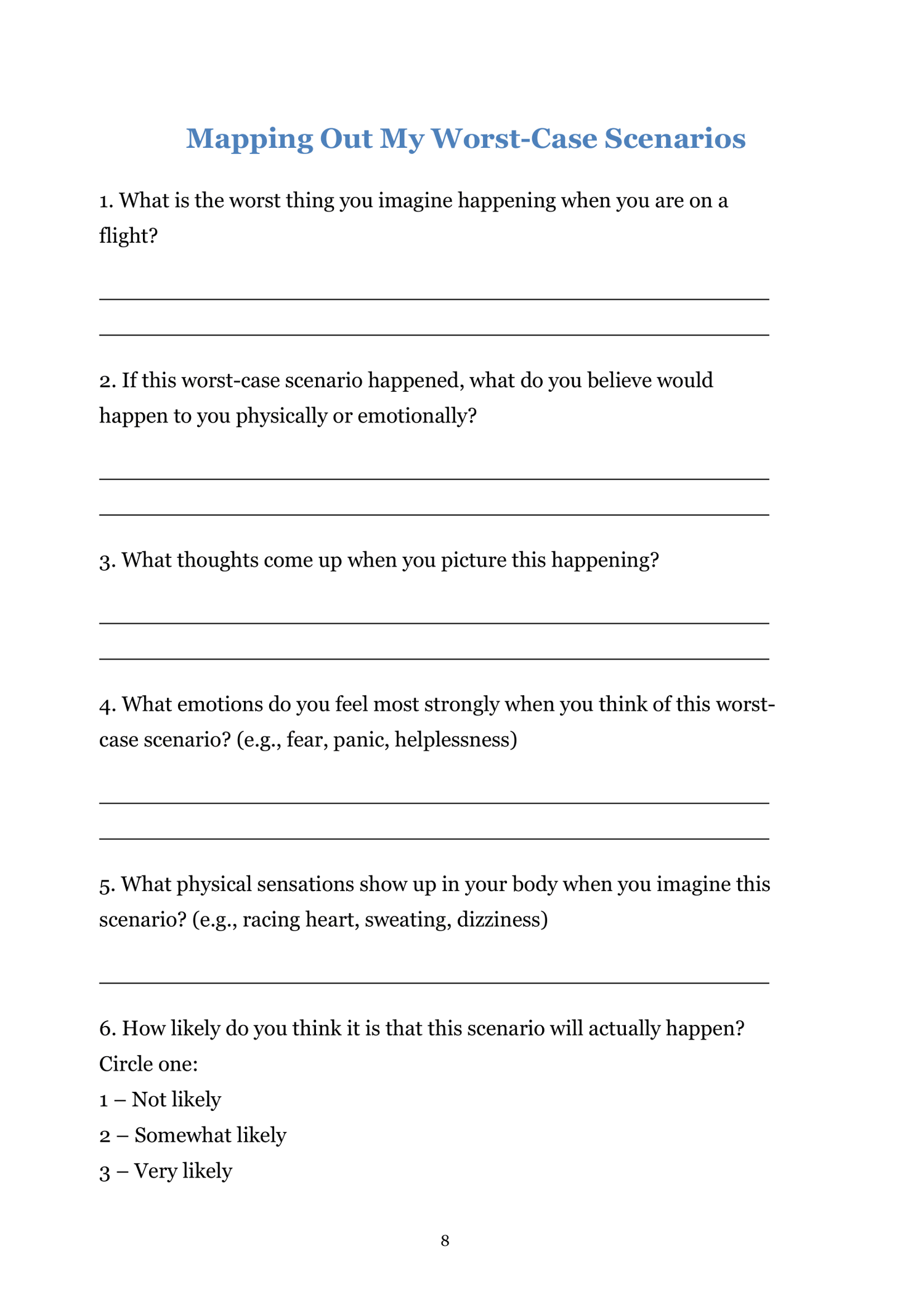 If so, the Flight Anxiety Worksheets are designed to help you understand your fear, calm your body, and feel more grounded before and during flights.