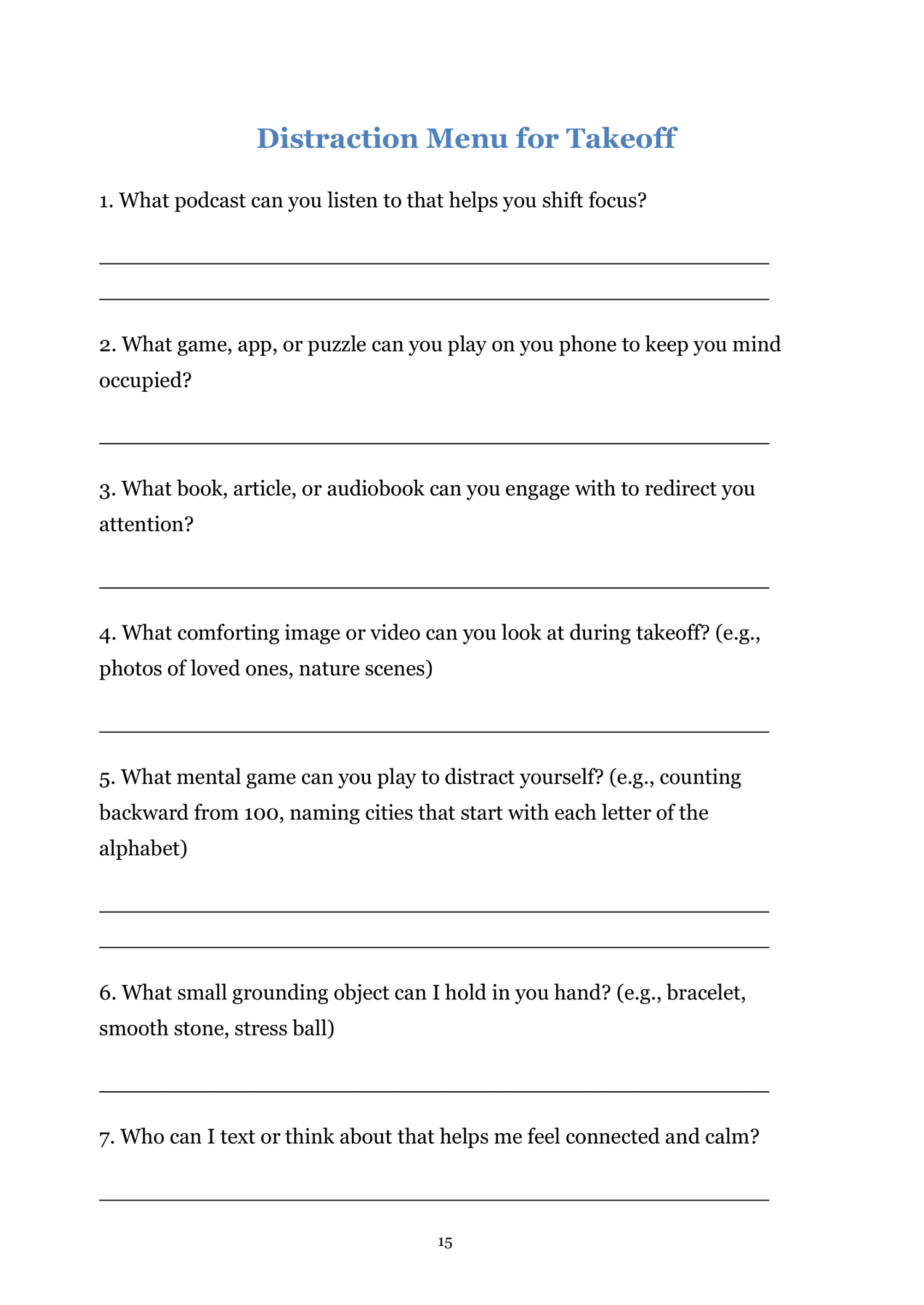 - Include in-the-moment calming techniques for takeoff, turbulence, and landing