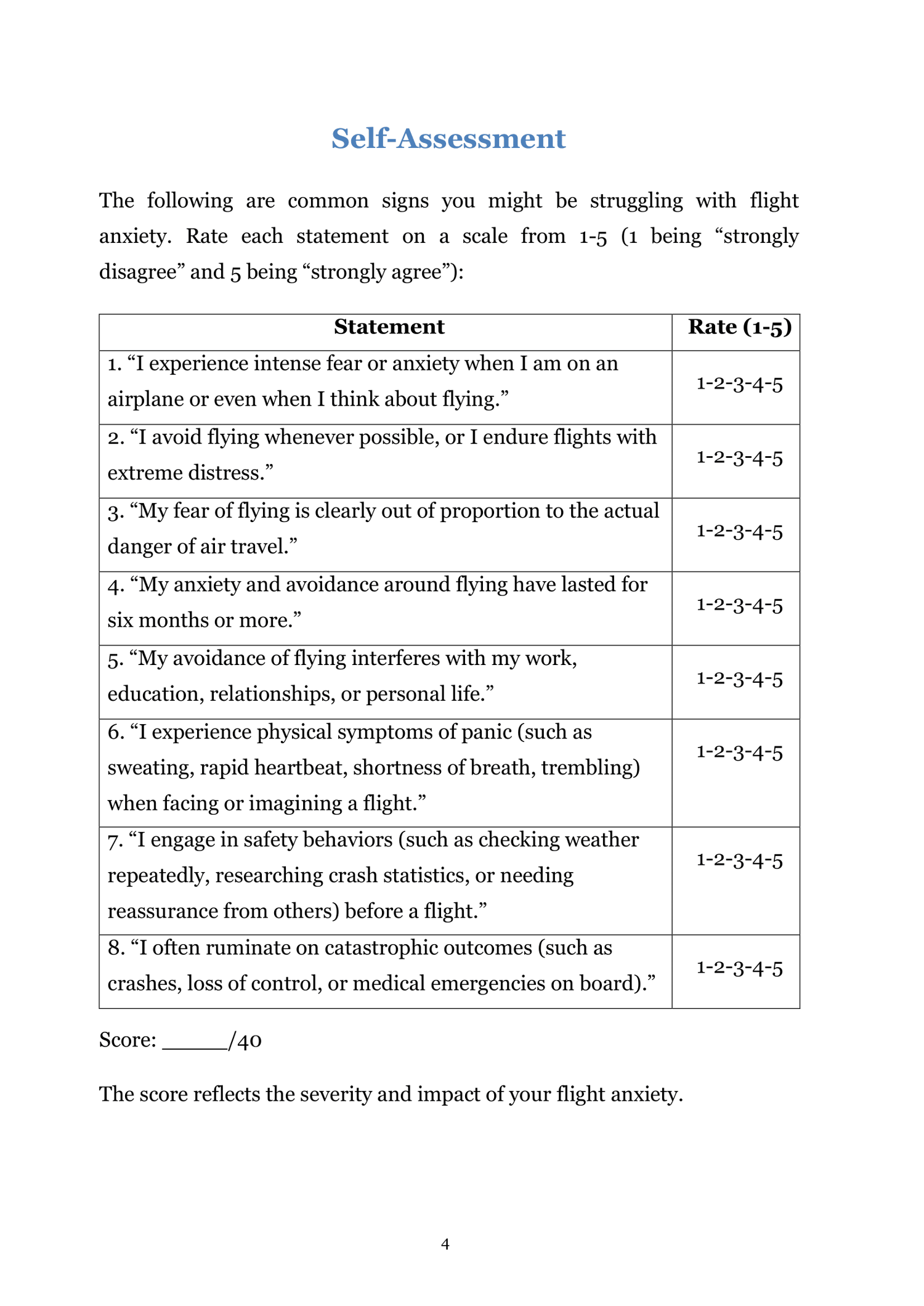 - Do you experience panic, nausea, or intrusive thoughts before or during a flight?