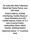 * Instructions on how to cut and prepare the fabrics
