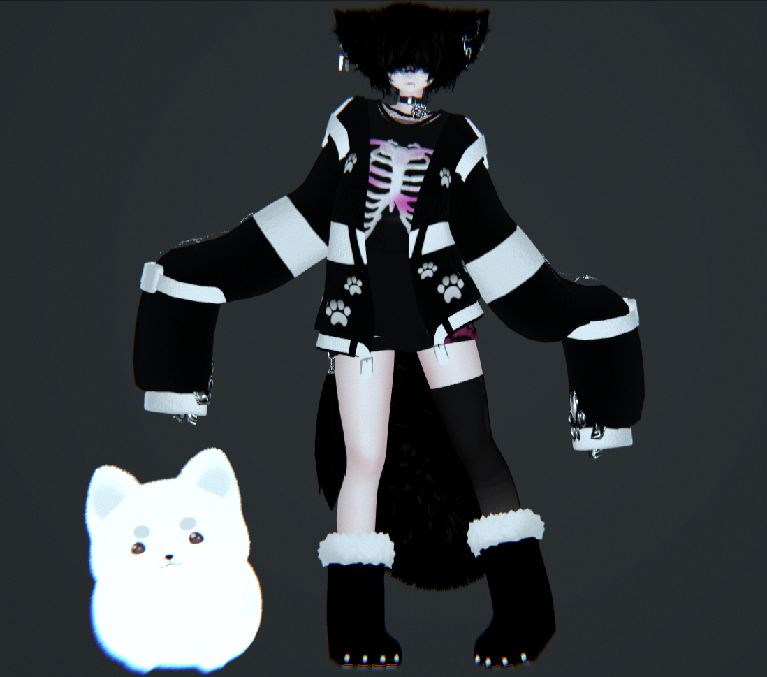 This model is TDA and SIMS/IMVU asset free. Everything on this model has been made by the VRChat community. This model is only allowed to be uploaded on the following platforms: VRChat, ChilloutVR, Helios VR WITH credit to myself, Pupchi#0420, and CANNOT be uploaded on a pedestal or made public for ANY circumstance.