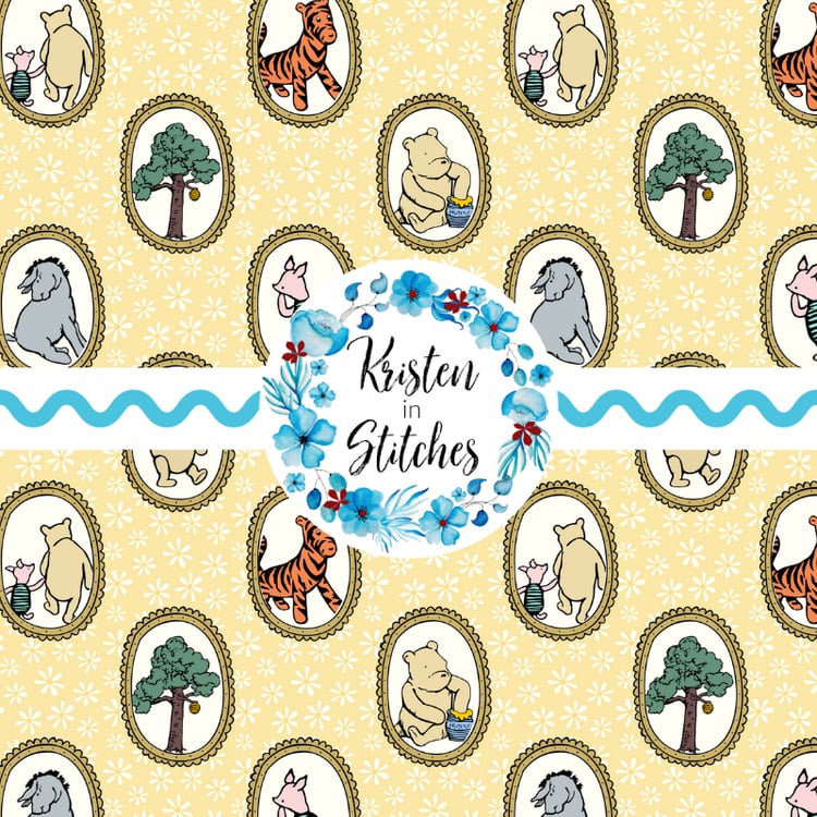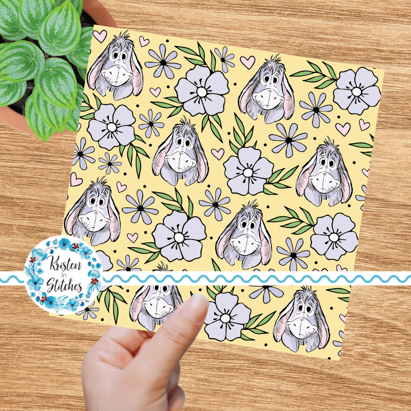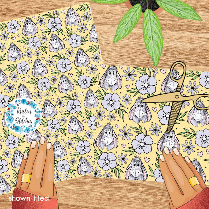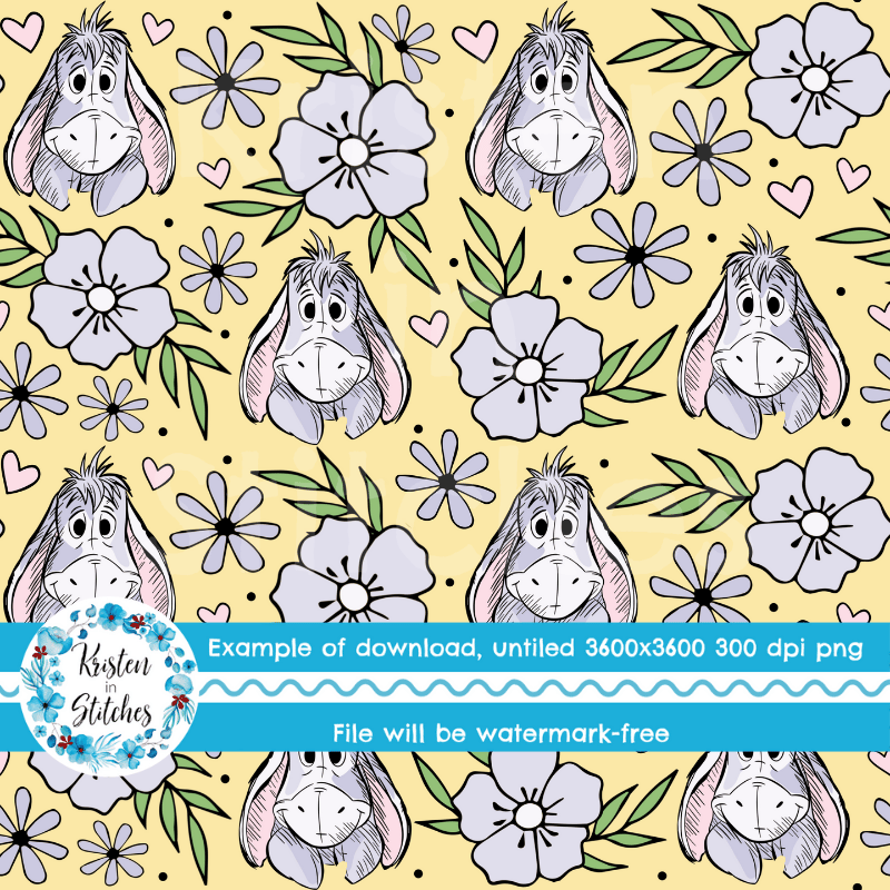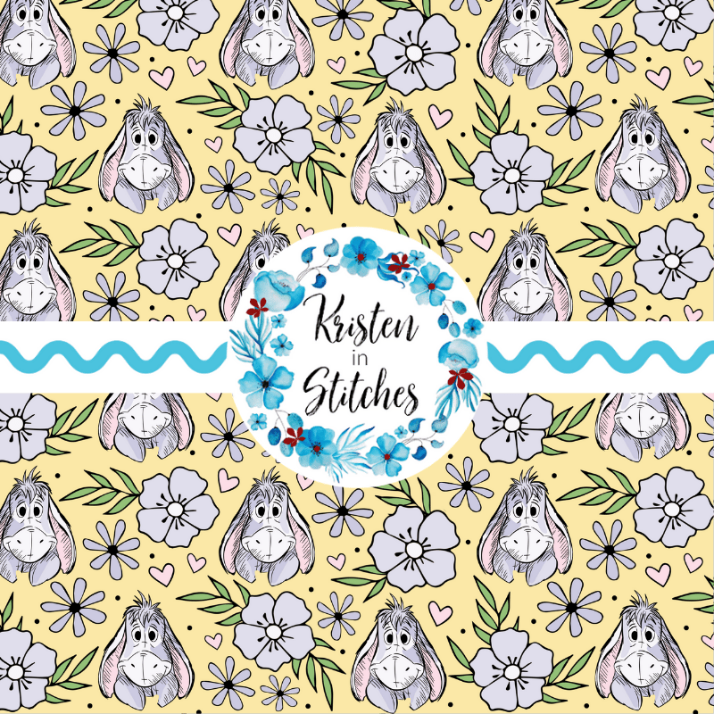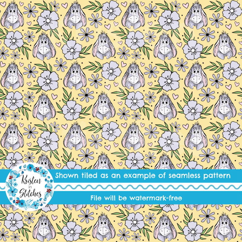 Eeyore Floral Seamless Pattern, Classic Winnie the Pooh Nursery, Soft Yellow